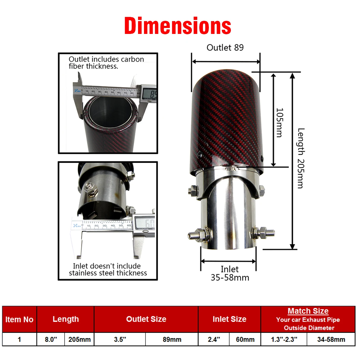 Пожалуйста, измерьте размер вашей автомобильной трубы перед тем, как сделать заказ.