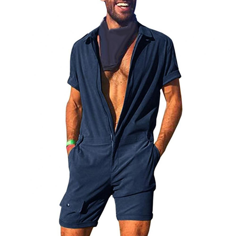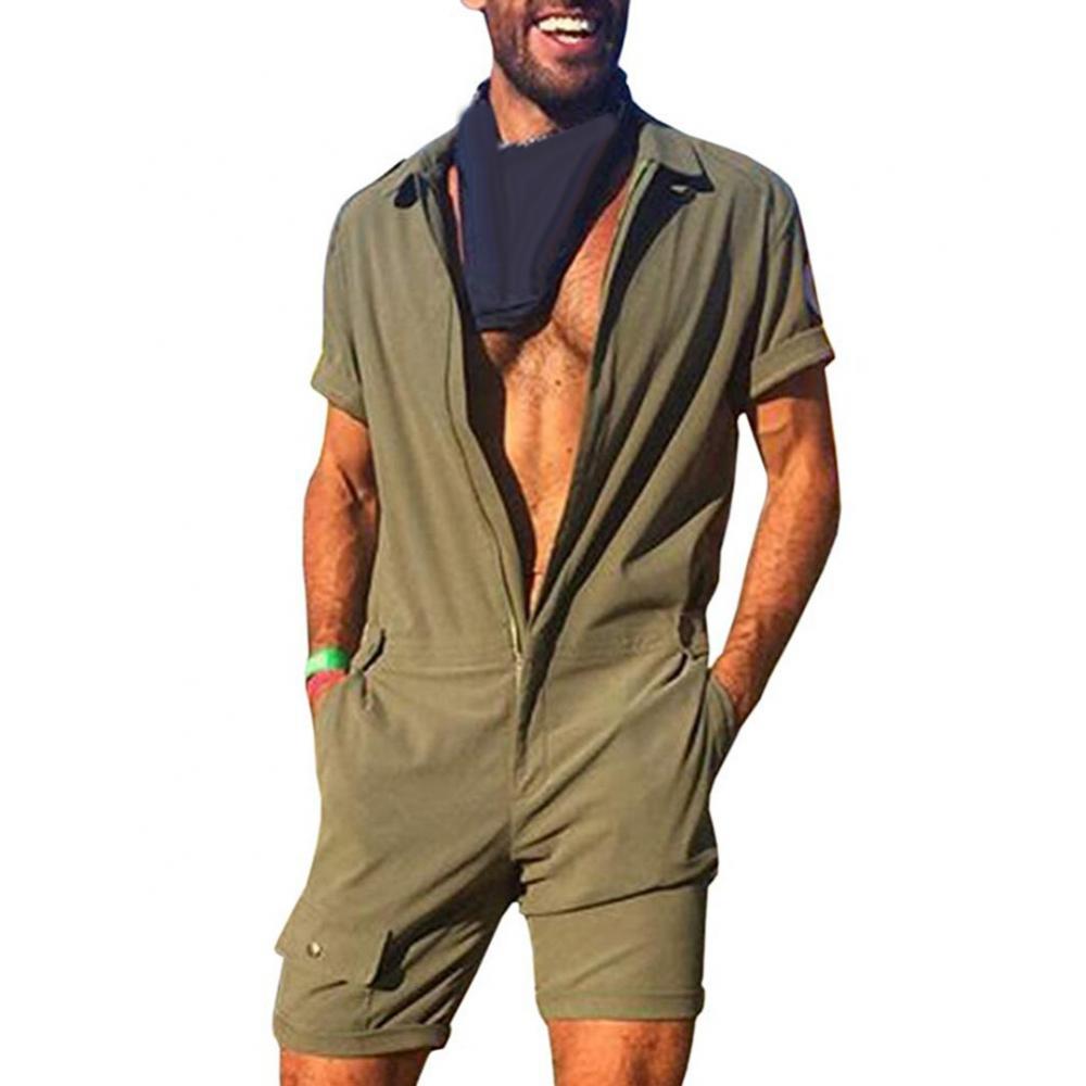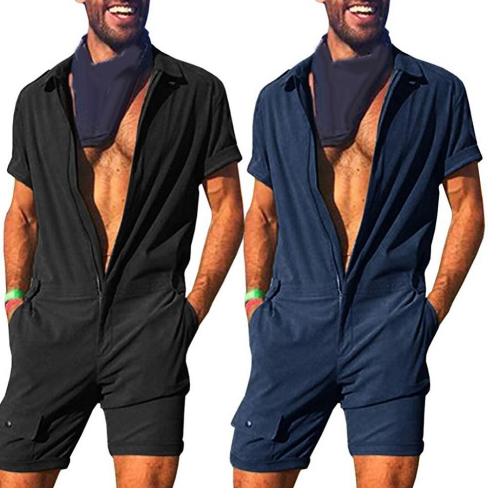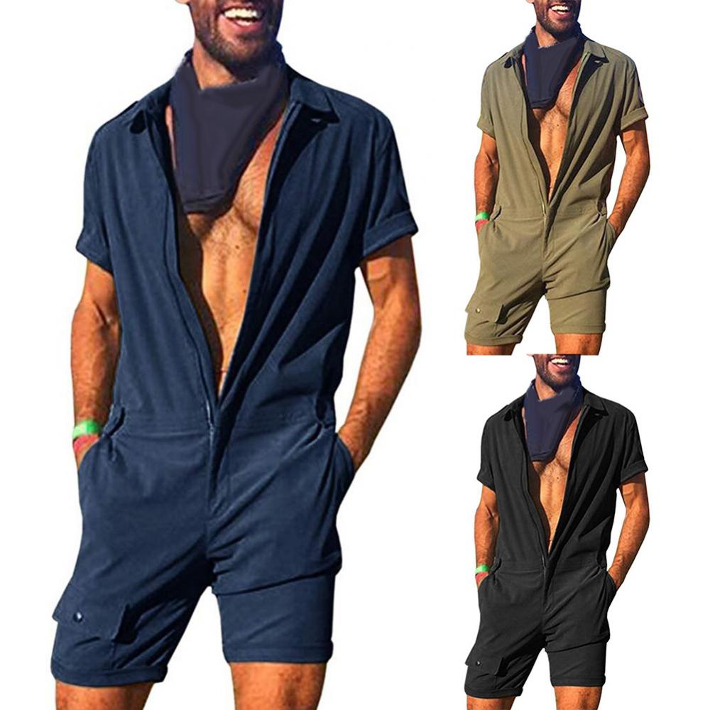 Мужской однотонный комбинезон с короткими рукавами и карманами, комбинезон с молнией, одежда для работы