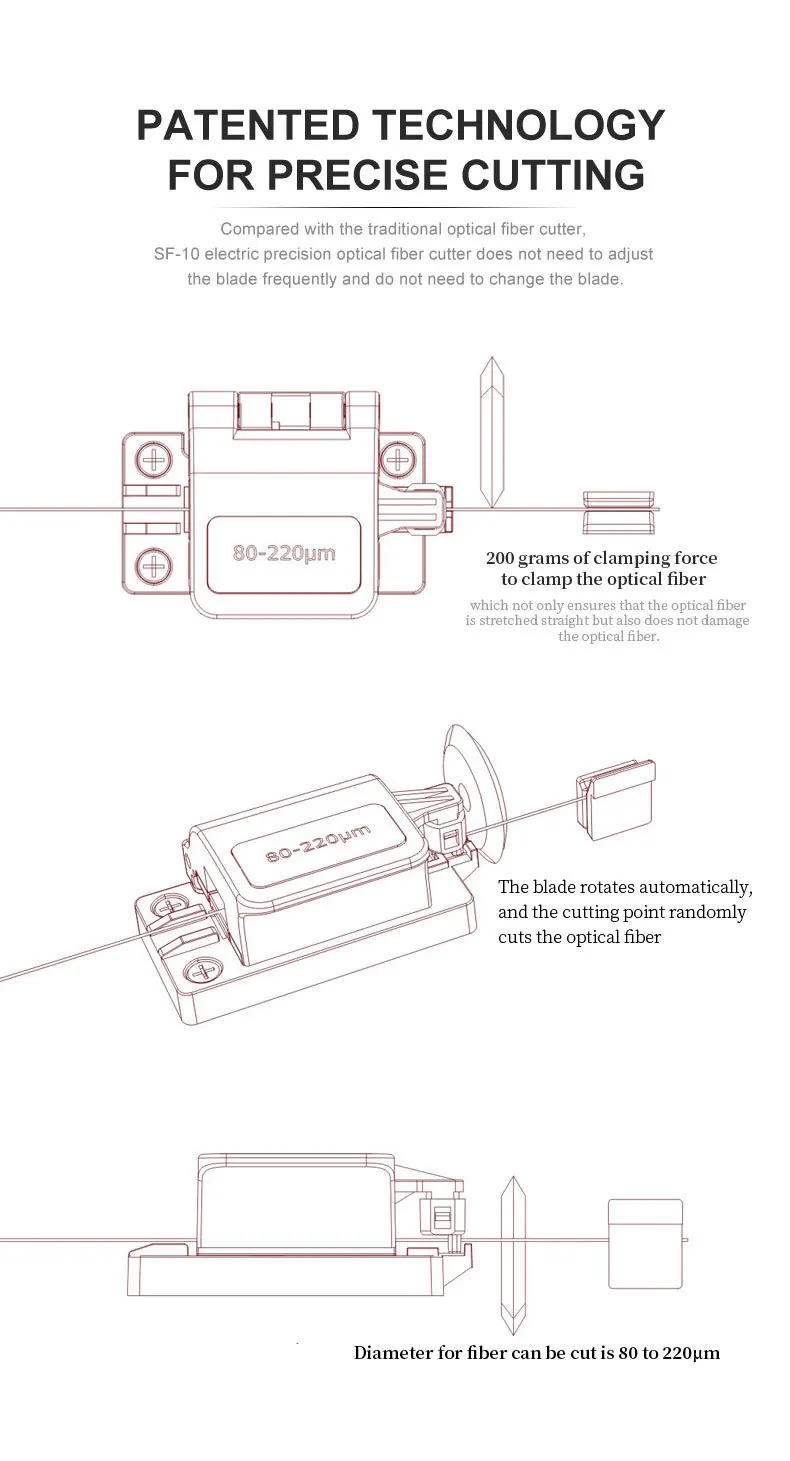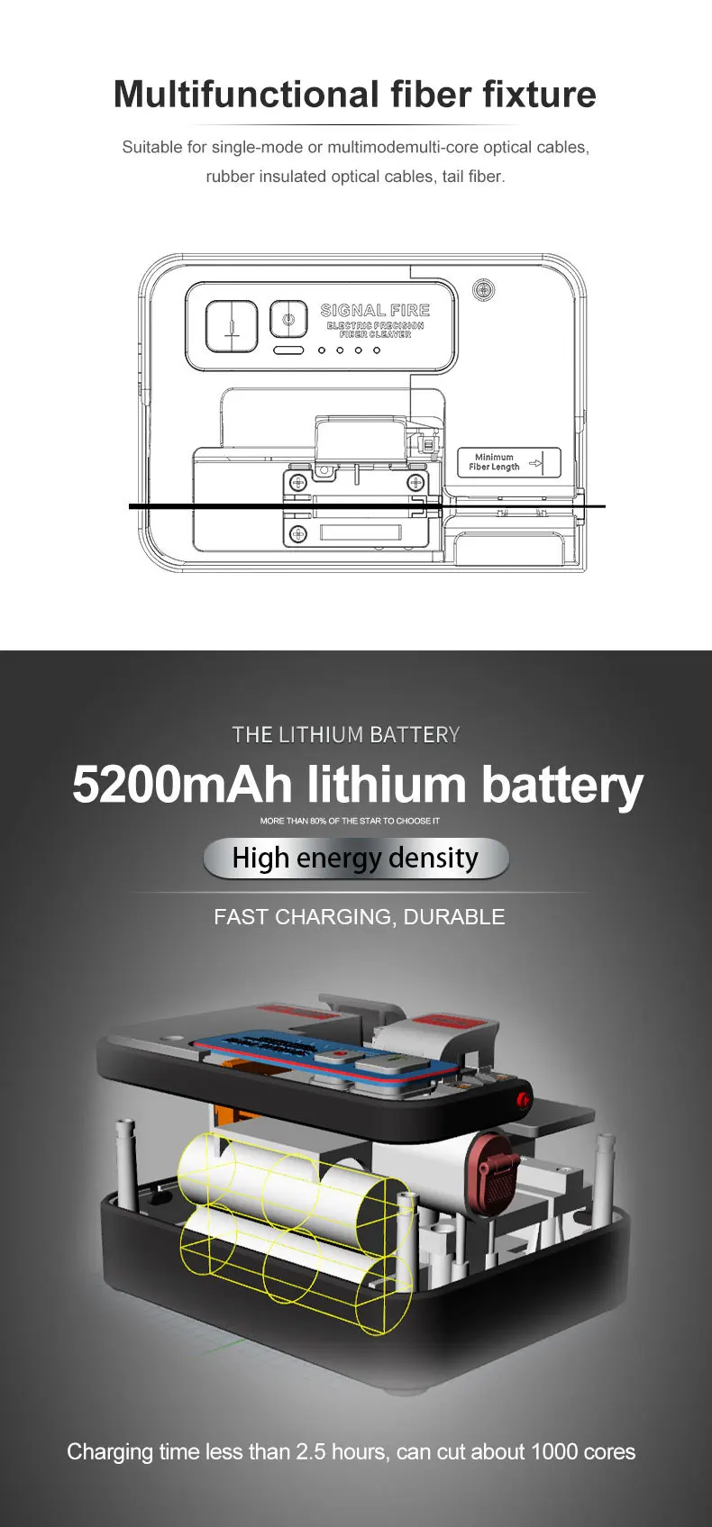 4.Tps: General alkaline AA batteries are no longer provided with the machine, avoid of battery delivery pending at customs checking.Matched lithium battery will be sent as charged items, customs pending risk still exist and please wait patiently.Thank you for your understanding.Signal Fire Electric Precision Optical Fiber Cleaver SF-10 FTTH fiber optic cleaver SF-10 electric fiber optic cleaver