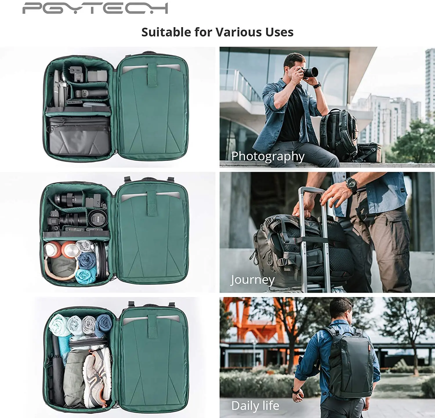 [Максимальная емкость 35 л]: содержит расширяемое пространство для хранения с максимальной емкостью до 35 л. Сжимаемое пространство для хранения в передней части рюкзака вмещает фотографическое оборудование, например ronin sc, и ваши ежедневные потребности, такие как одежда, спальный комплект и т. д.