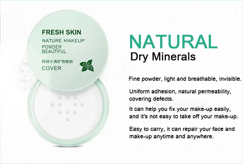 Натуральный минеральный порошок, светильник, дышащий, невидимый. Равномерное сцепление, естественная проницаемость, покрытие дефектов. Это поможет вам легко исправить макияж, и это не так просто снять make-up.Easy носить с собой, он может восстановить ваше лицо и макияж в любое время и в любом месте.