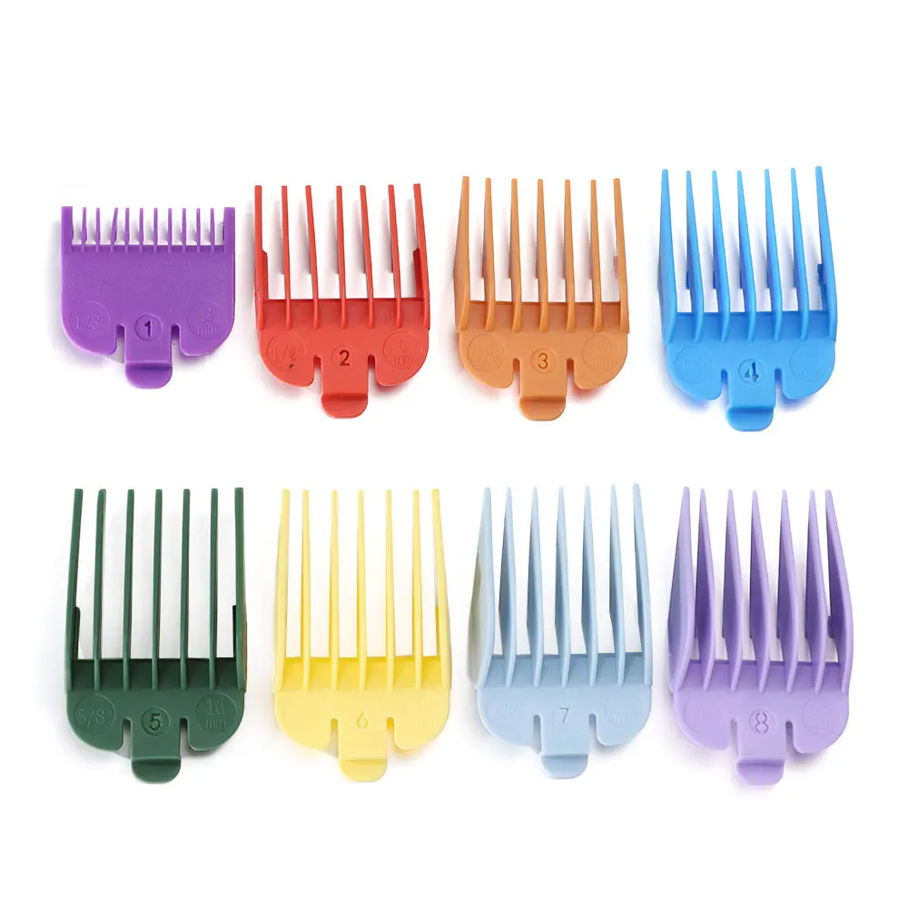 Отлично подходит для стильных зубцов-расчесок направляющих для стрижки имеют круглую форму, не нужно беспокоиться о ударе кожи головы. Гребни для стрижки имеют 8 различных длин резки с высокой строгой, вы можете закрепить различную длину ваших волос и создать свою прическу на основе ваших собственных предпочтений.
