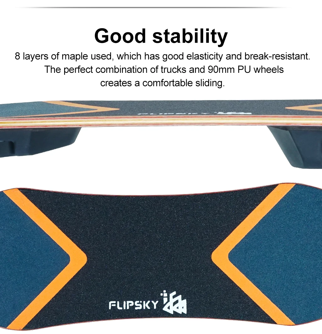 Преимущества электрического скейтборда Flipsky F1:Батарея Samsung: фирменная батарея с небольшим внутренним сопротивлением, большой разрядной мощностью и низким тепловым производством, которая является надежной и долговечной.