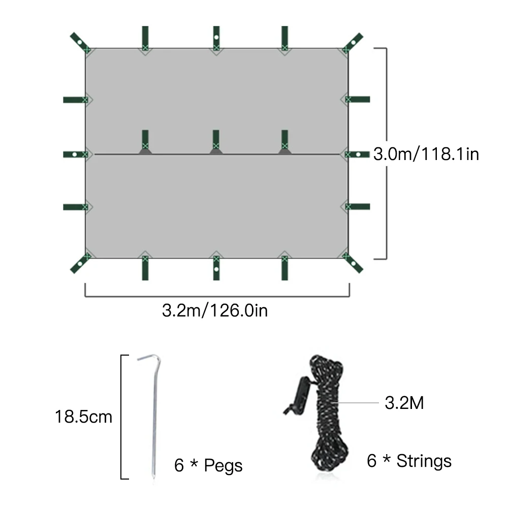 Can be used as a survival tarp, hammock shelter, outdoor kitchen cover, simple tent, tent footprint, ground sheet.