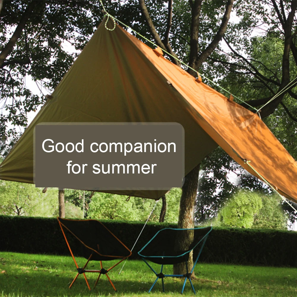 This awning is made from polyester fabric with silver coating, blocking more than 90% of the ultraviolet rays; Strong PU5000mm waterproof coating, weather-resistant. Small packaging volume, large developed area. Great for camoing, picnic,party and other outdoor activities.