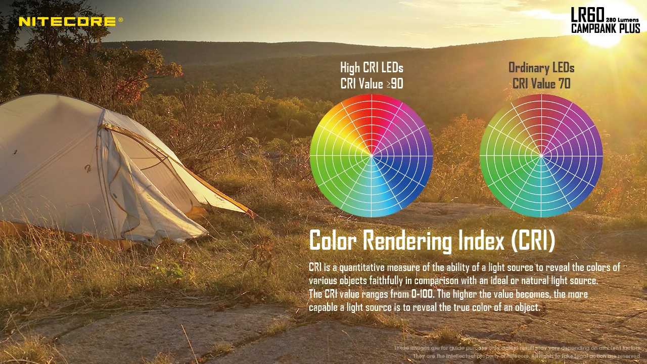 Использует светодиоды 9 x high CRI (CRI≥ 90, цветовая температура: 4000-4500K) с максимальной выходной мощностью 280 люменов