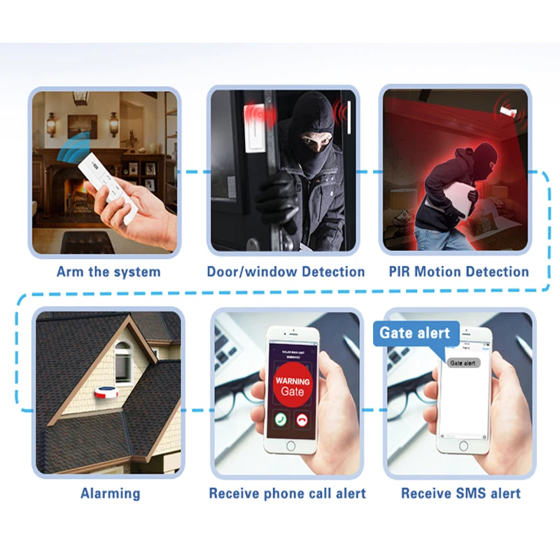GPRS сигнализация солнечной энергии * 1 Датчик движения PIR * 1 Датчик двери/окна * 1 Клавиатура * 1 + кнопка SOS * 1 Датчик воды * 1 Датчик дыма Mate * 1