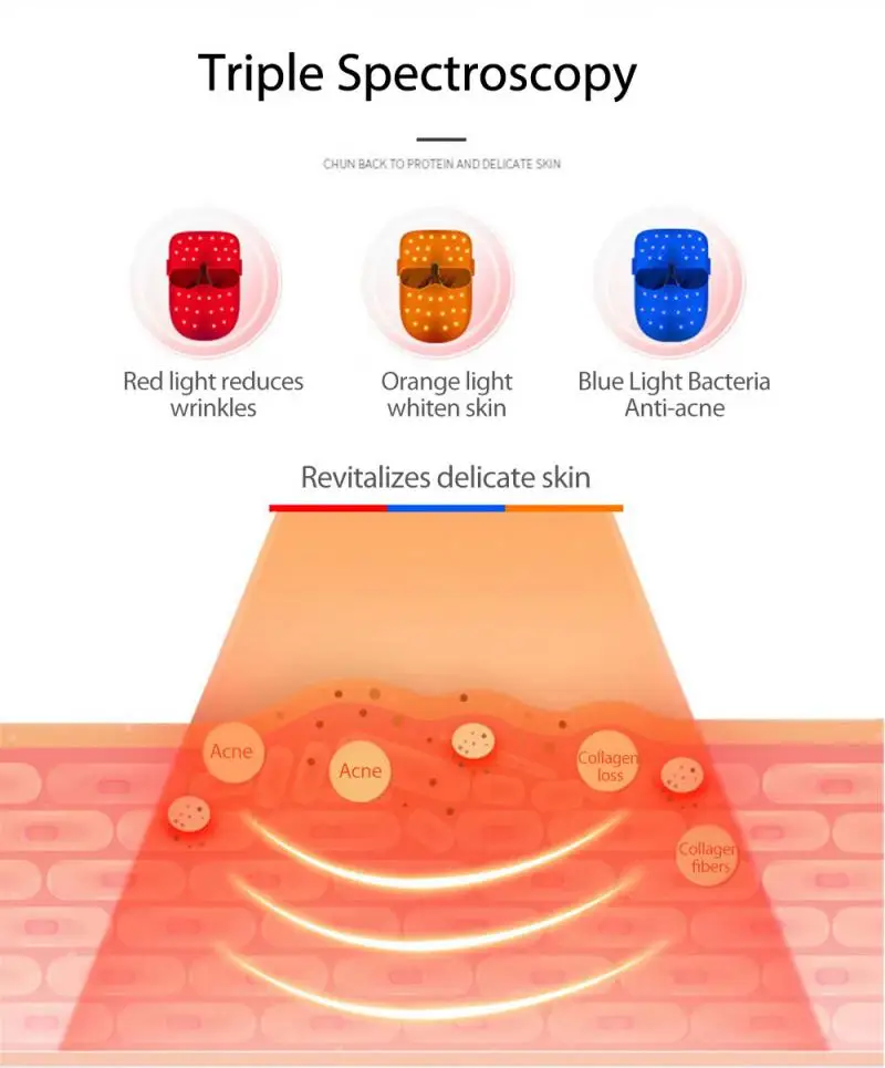 Красный светильник для уменьшения морщин, оранжевый светильник для отбеливания кожи, синий светильник для очистки бактерий и акне