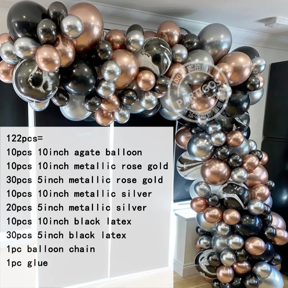 122 шт./компл. латексные шары черного агата хром металлик розовое золото серебро шар гирлянда арка для свадебного украшения детей день рождения