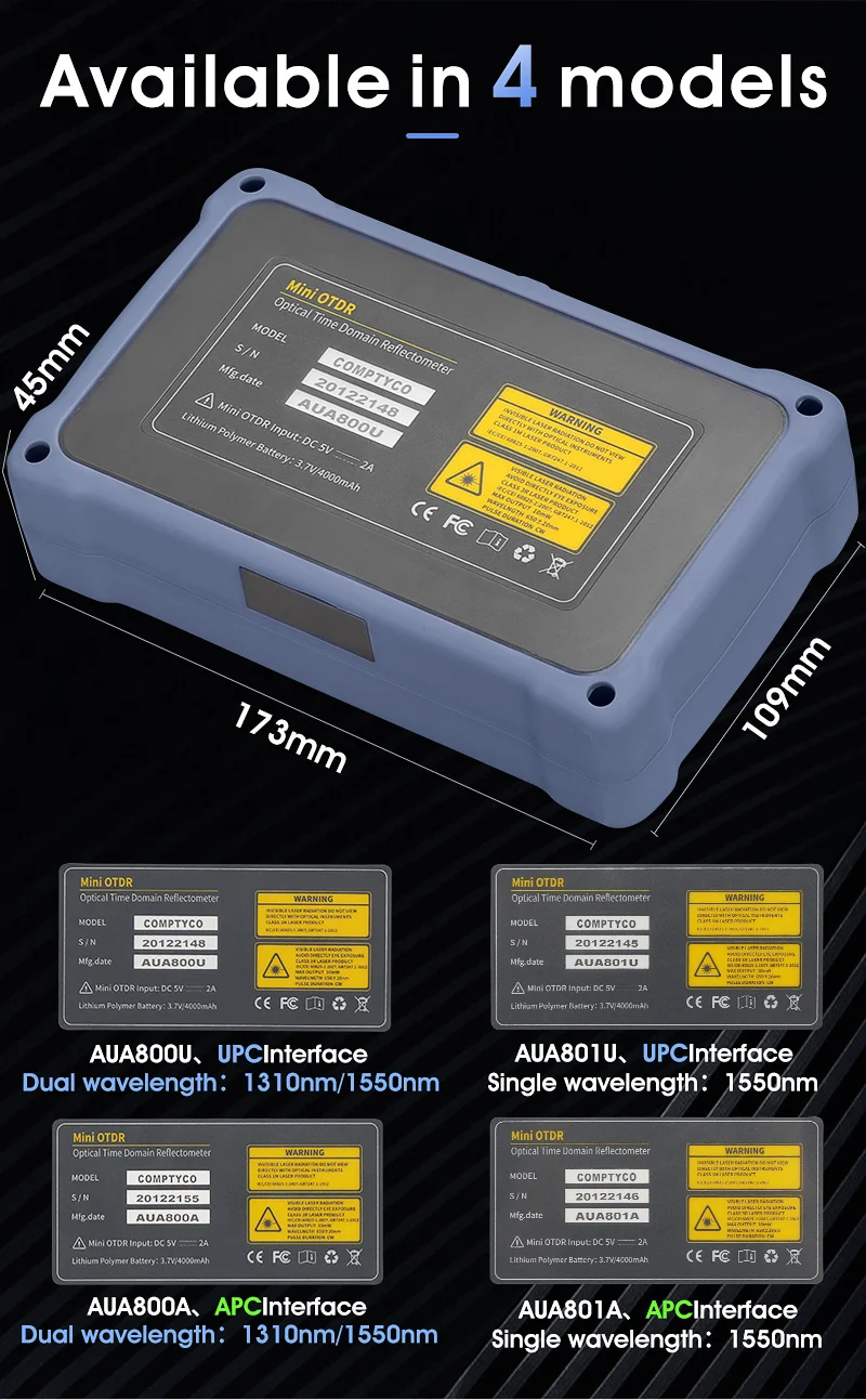 AUA800 12 в 1 100 км Мини OTDR 1310/1550nm 26/24dB волоконно-оптический рефлектометр сенсорный Экран VFL операции КПМ Тестер кабеля Ethernet