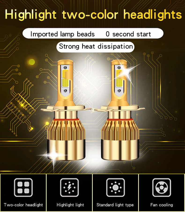 Напоминание: H4-это Дальний свет белого, ближний свет желтого цвета, другие модели могут использовать переключатель для поворота белого и желтого цветов.