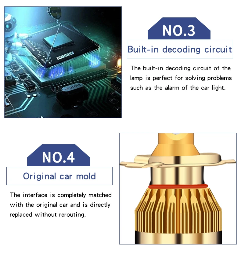 Посылка2 светодиодные лампы для фарВажное примечание:Для некоторых европейских транспортных средств, оснащенных системами CANBUS, наши светодиодные передние фары могут не светильник ться и не мигать.Для предотвращения этого необходим релейный жгут с защитой от мерцания. Просто в чехле, пожалуйста, проверьте размер, прежде чем делать заказ!