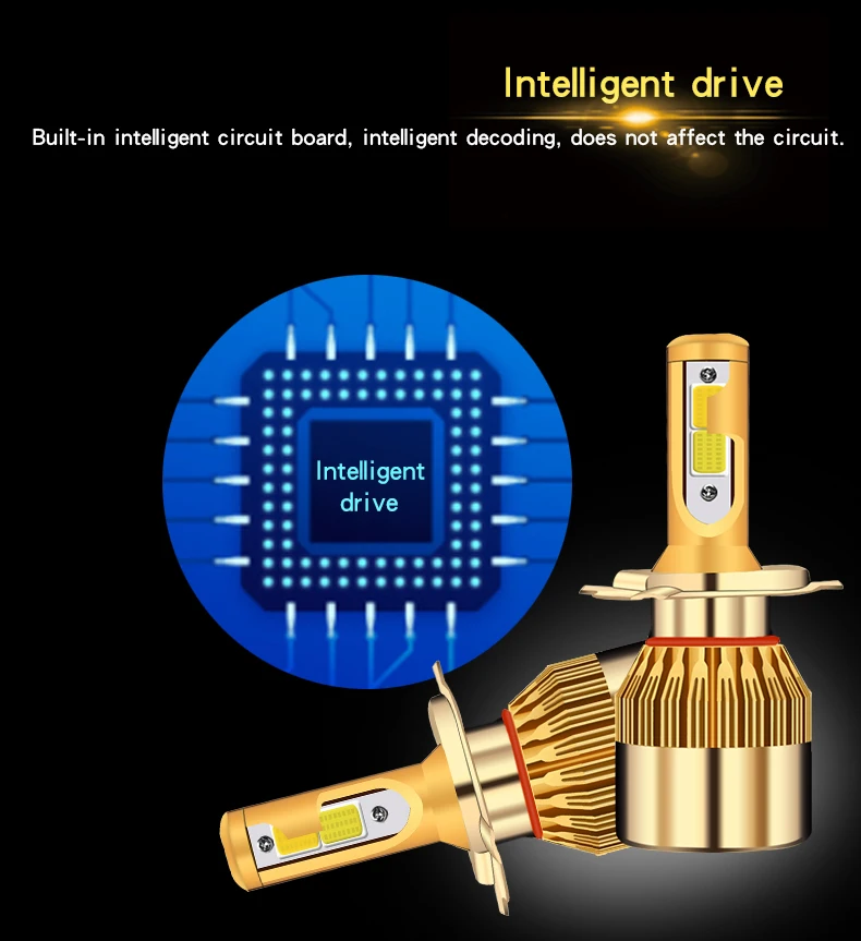 5. Энергосберегающая конструкция, 76 Вт достигает светового потока 9600 люмен, который ярче и энергосберегает больше, чем обычные автомобильные фары.