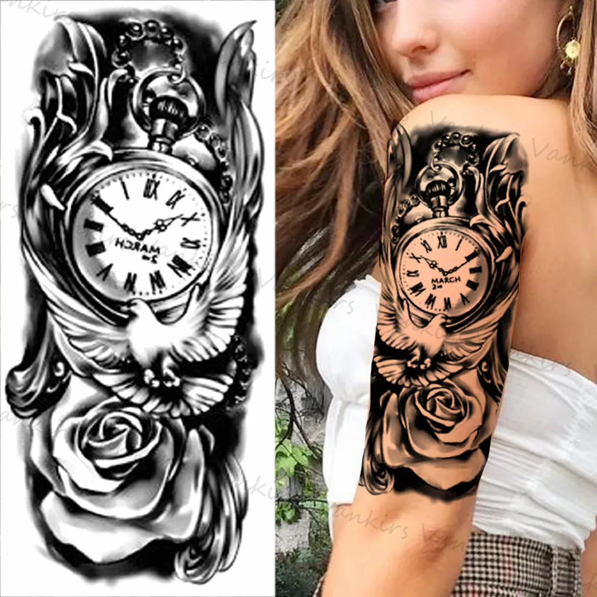 Геометрические 3d Временные татуировки для мужчин и женщин кулон цветок компас Лев молитва поддельные наклейки-тату на руку тело тату водонепроницаемые