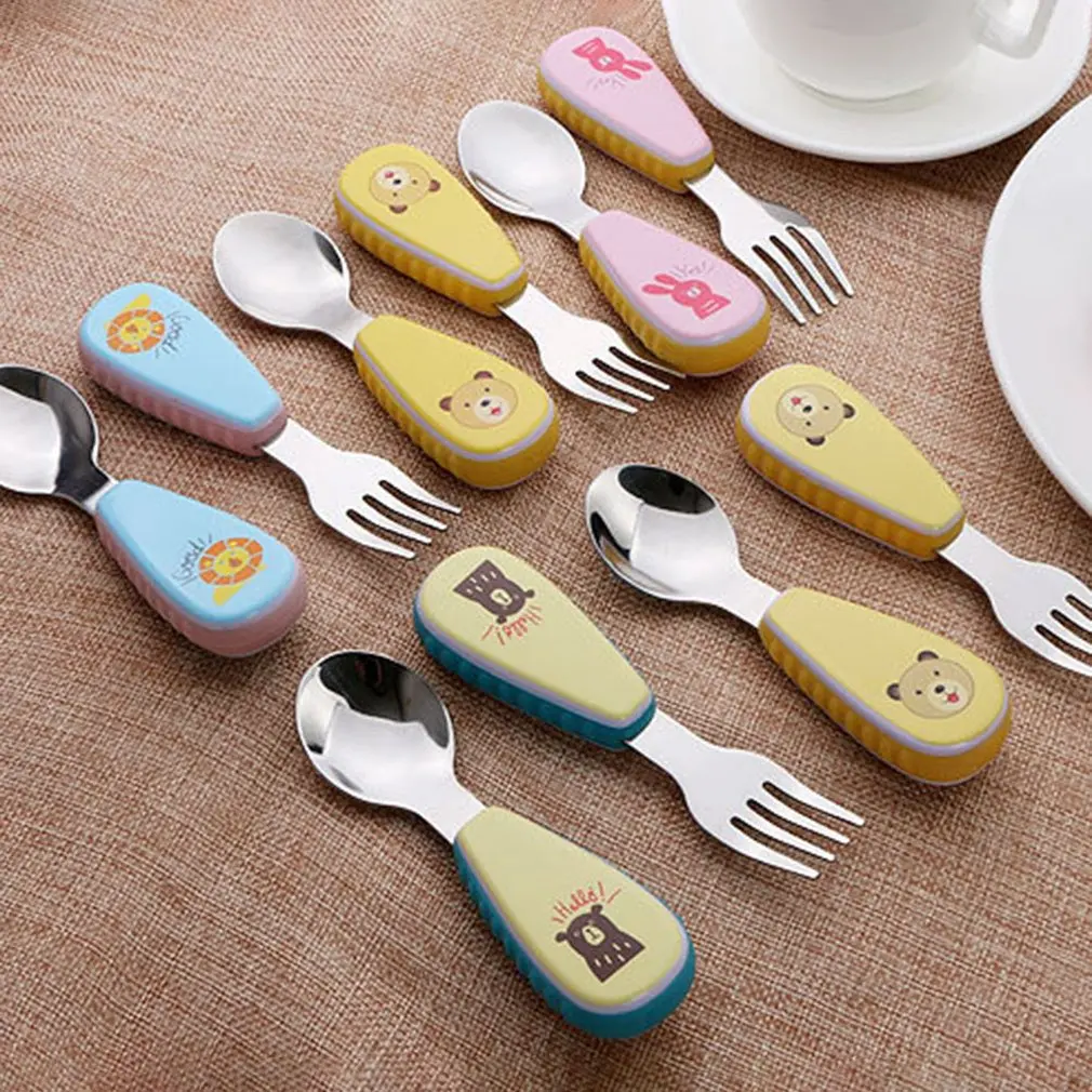 Портативная посуда, вилка, милый костюм из двух предметов, Детская креативная Студенческая посуда с противоскользящей ручкой