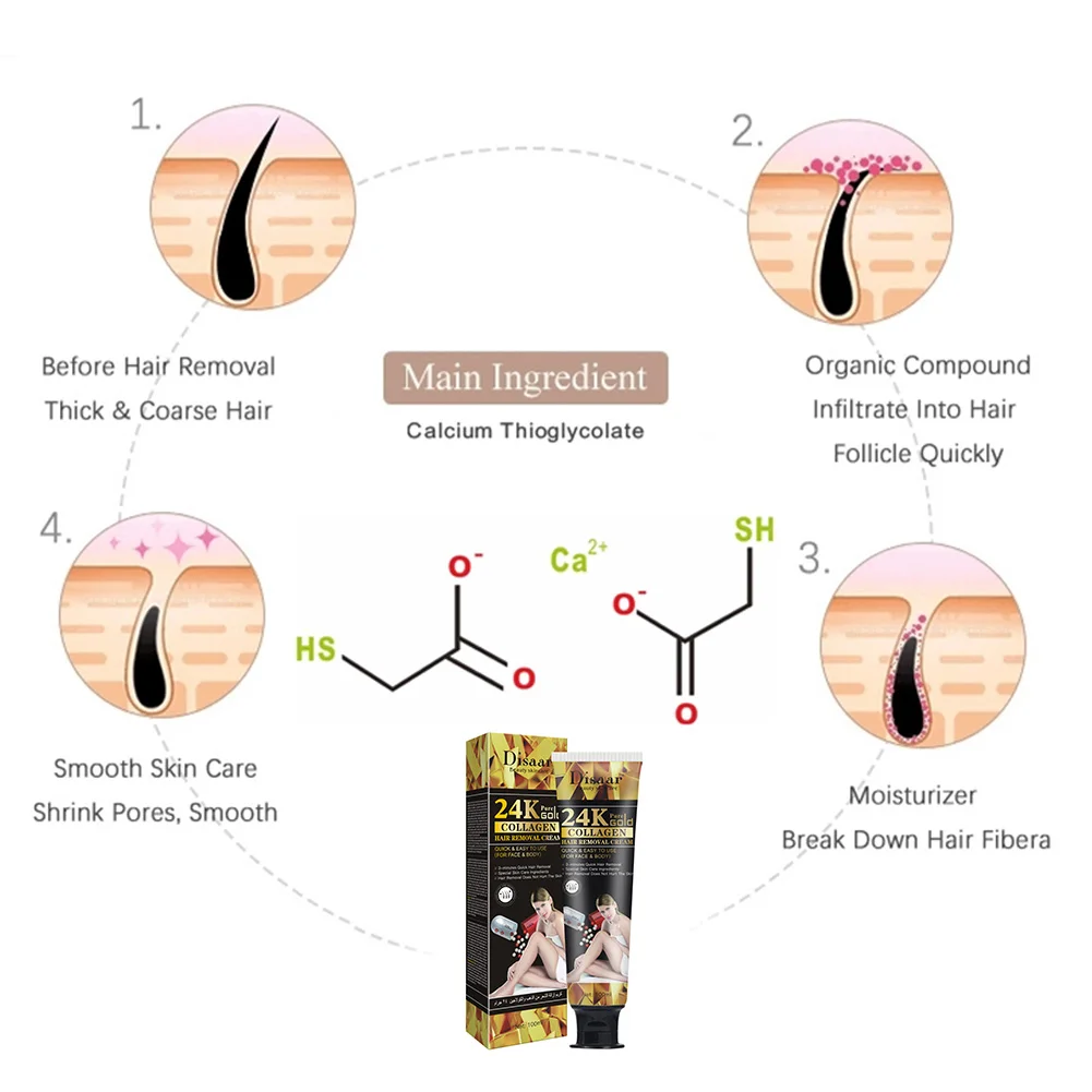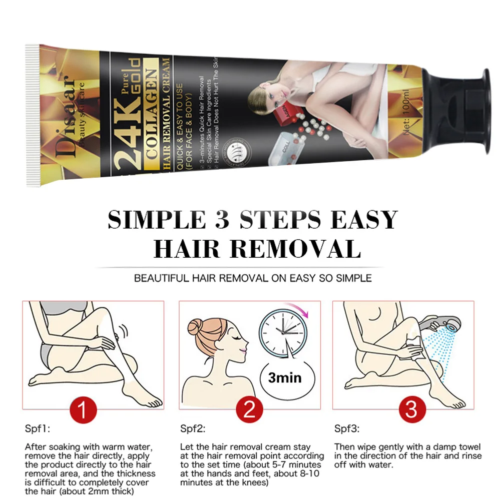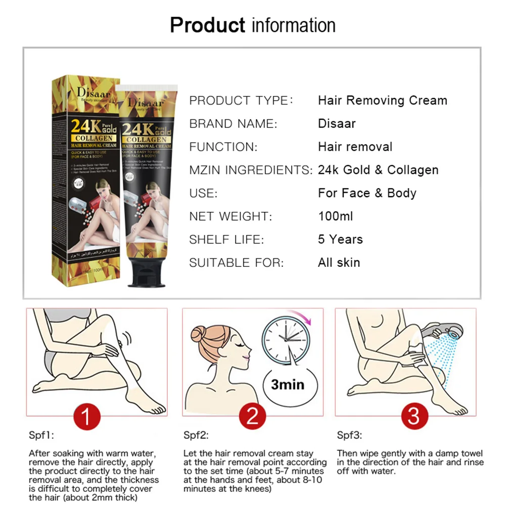 * 3. Простота в использовании: нанесите крем на кожу равномерно и оставайтесь не более 10 минут, что позволяет эффективно удалять волосы.