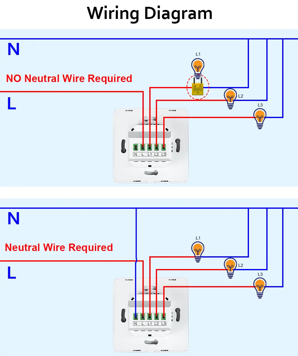 5.Convenient wiring:Neutral+Livewire /No Neutral wire can be easily installed;
