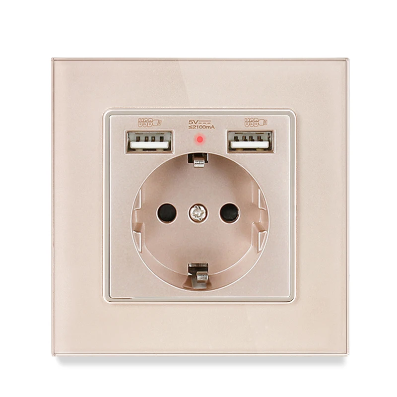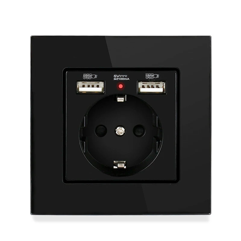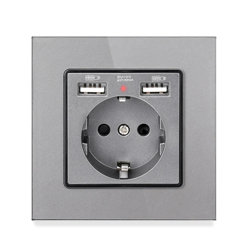 Настенная USB-розетка Minitiger, новая стильная панель, розетка для спальни, 110-250 В переменного тока, 16 А, настенная встроенная, двойная usb-розетка стандарта ЕС