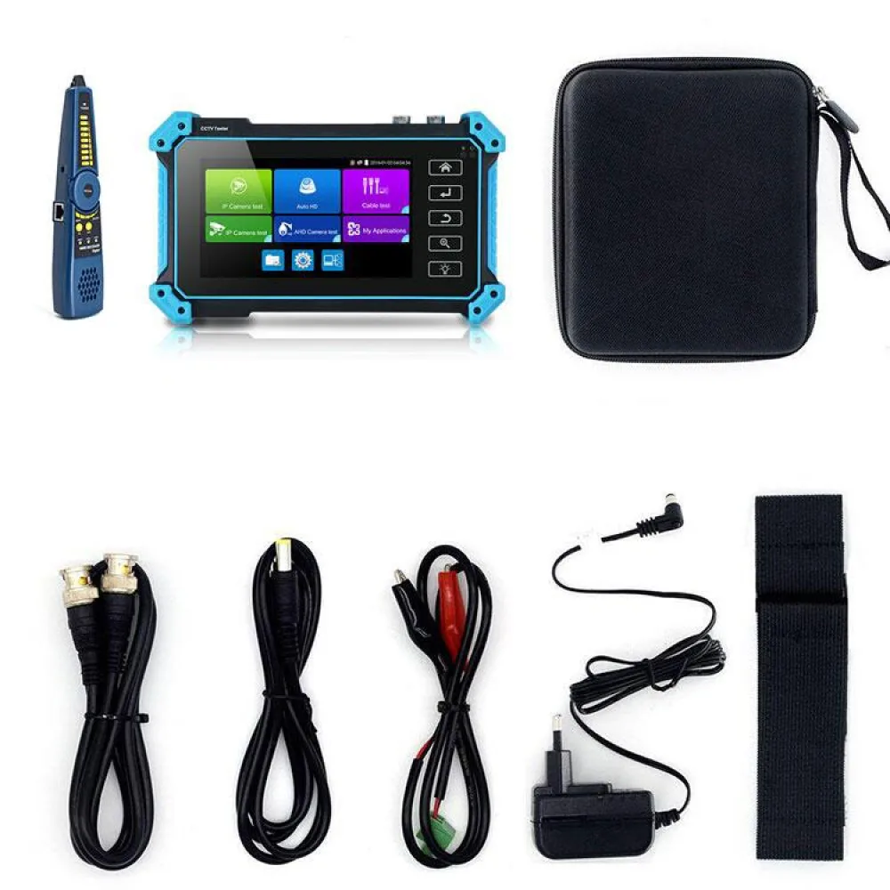 5 дюймов IPS сенсорный экран ip-камера тестер предназначен для обслуживания и установки IP аналоговый видеорегистратор, HD коаксиальный камеры, а также другое оборудование для безопасности. Разрешение 1920*1080 позволяет отображать сетевые hd-камеры и аналоговые камеры в высоком разрешении. Устройство поддерживает множество функций ONVIF PTZ и аналогового управления PTZ и тестирования кабеля. Монтажники системы видеонаблюдения часто должны носить с собой различные инструменты тестирования, чтобы завершить свою работу. Если взять все в одном тестере камеры, что делает условия работы более безопасными и повышает производительность.