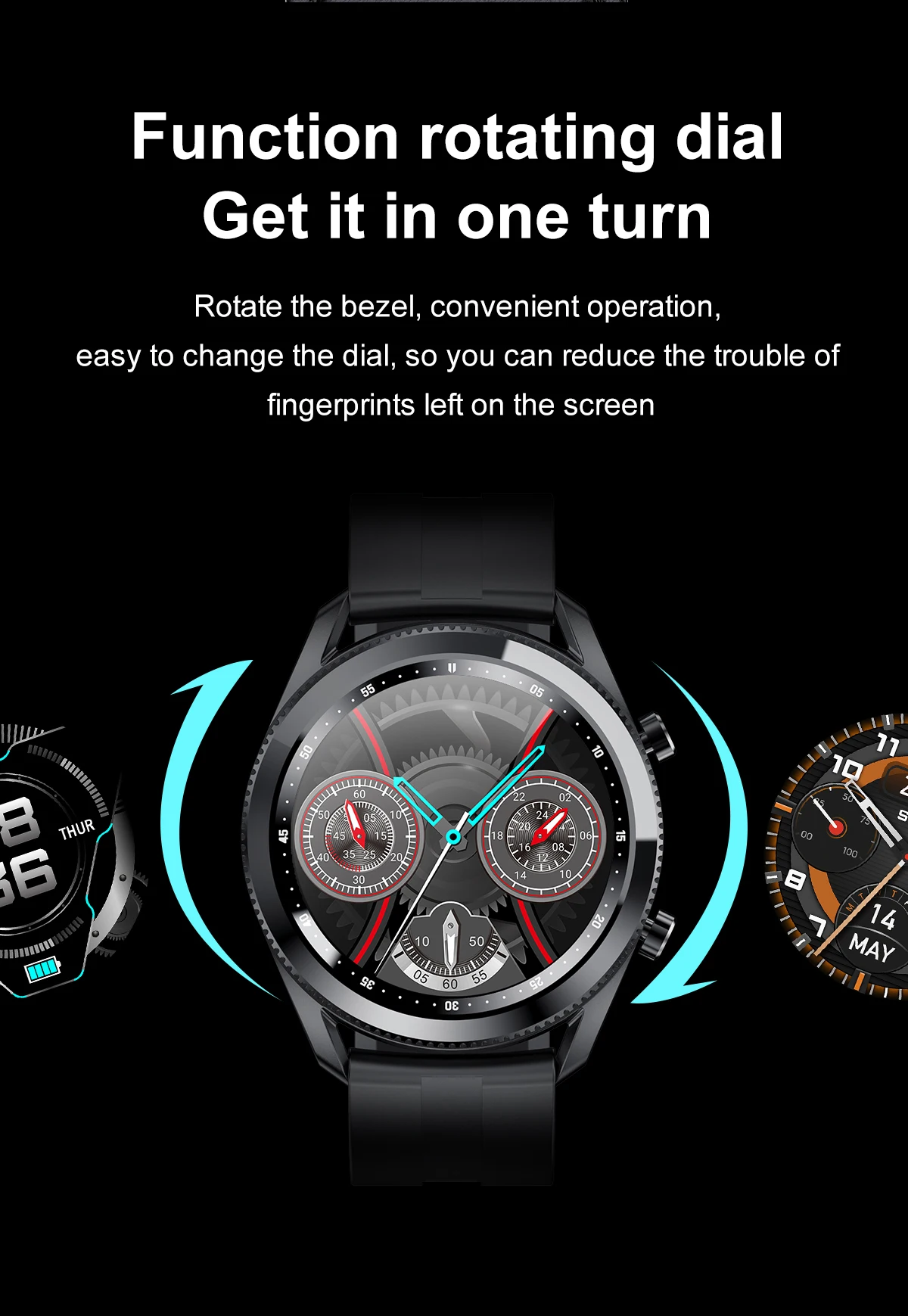 1. Двусторонний вращающийся ободок позволяет легко переключать приложения, уменьшая проблемы с оставшимися на экране отпечатками пальцев (ручка циферблата использует высокоточный кодировщик, импортированный из Японии).