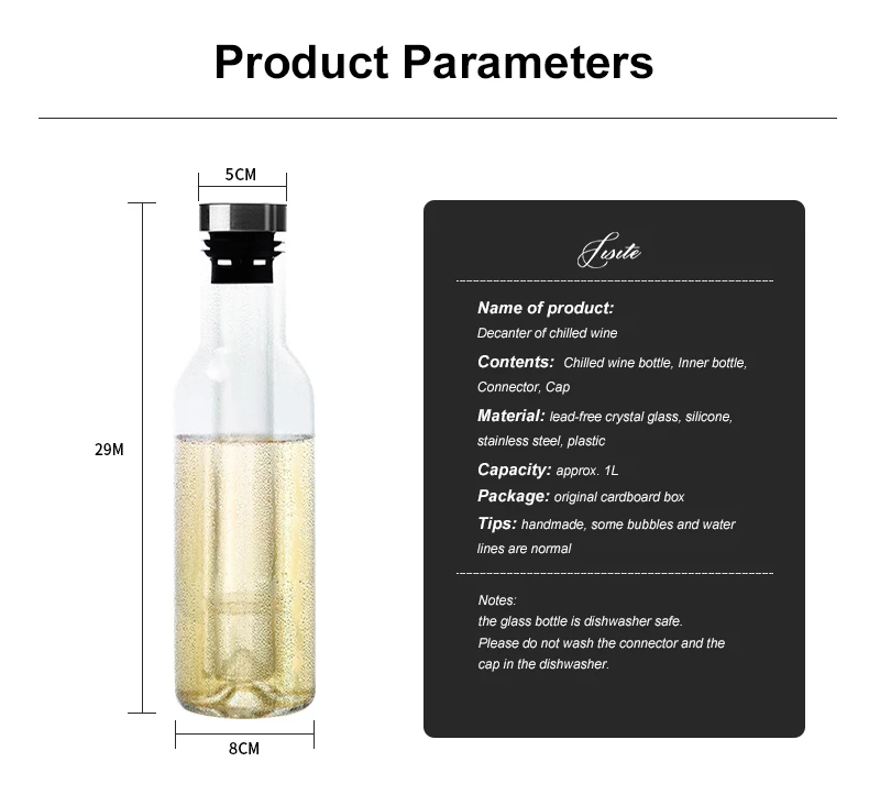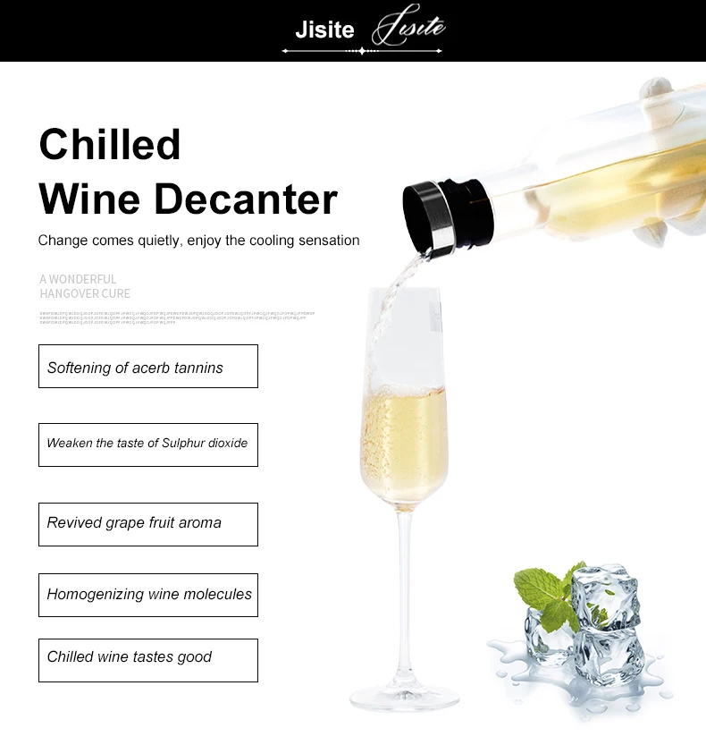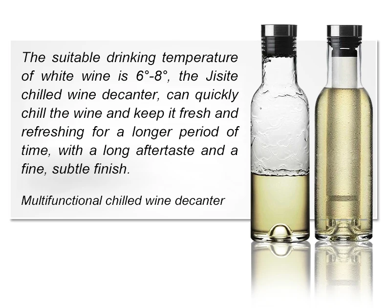 Подходящая температура питья белого вина 6 ℃-8 ℃, Jisite охлажденный графин вина, может быстро охладить вино и сохранить его свежим и освежающим в течение более длительного периода времени, С длительным послевкусием и afine, тонкая отделка.