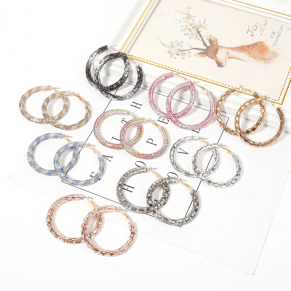 Женские блестящие однотонные Стразы WGOUD, массивные круглые серьги с радужными кристаллами, в подарок, модные серьги-кольца