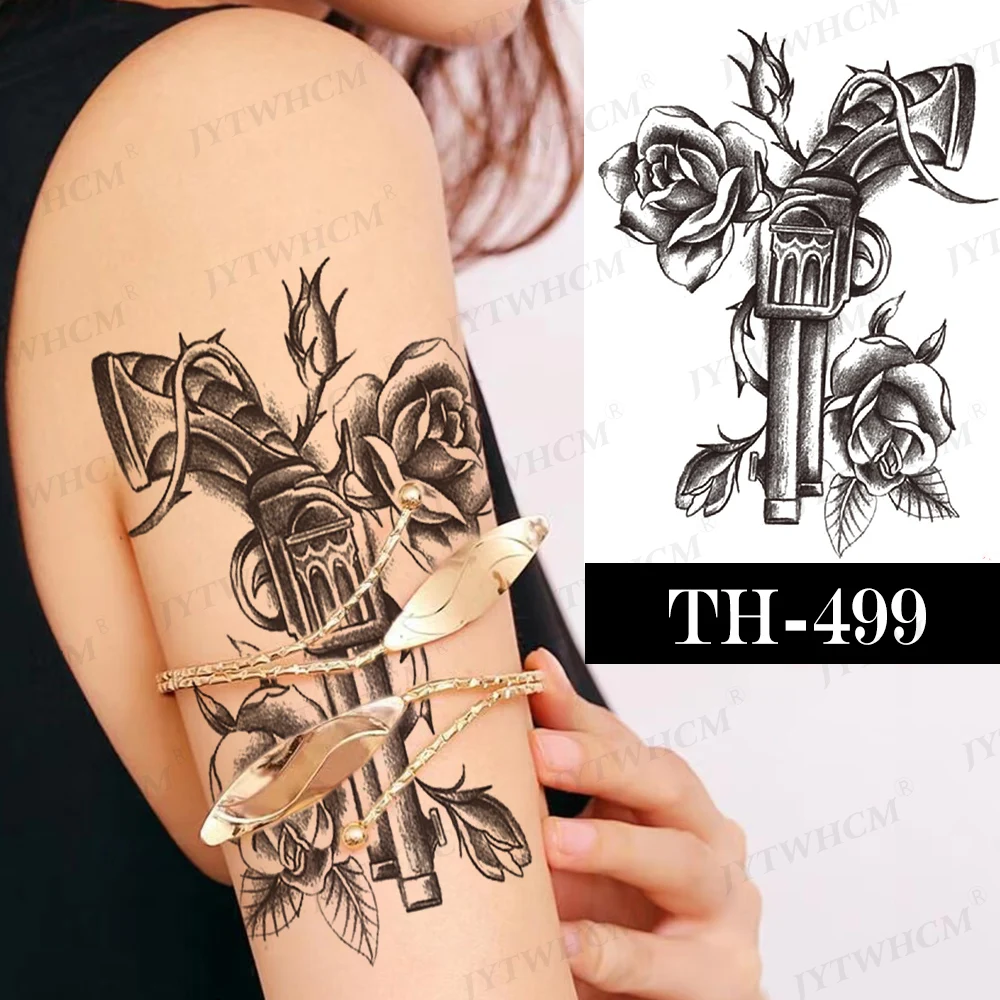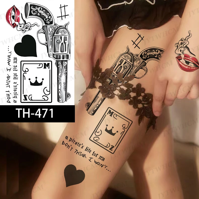 Водостойкая временная татуировка, пистолет, пистолет, тату, сексуальные красные губы, кружевной чулок, аксессуары для ног, флэш-тату, поддельные татуировки для девушек и женщин