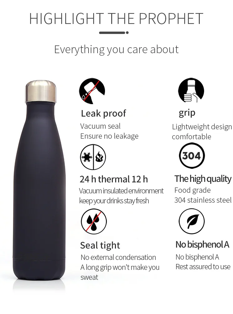Спортивная бутылка для воды с двойными стенками и порошковым покрытием, 17 унций, 500 мл