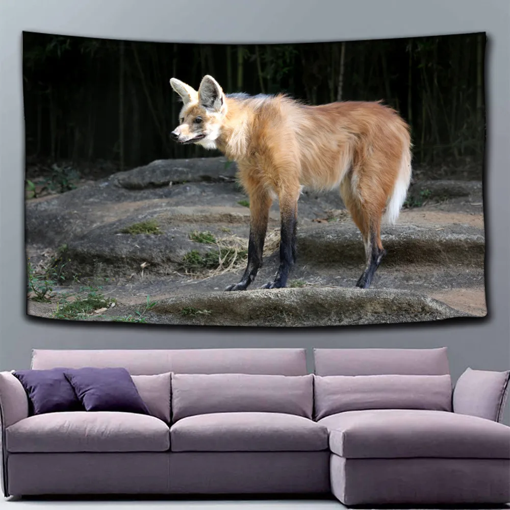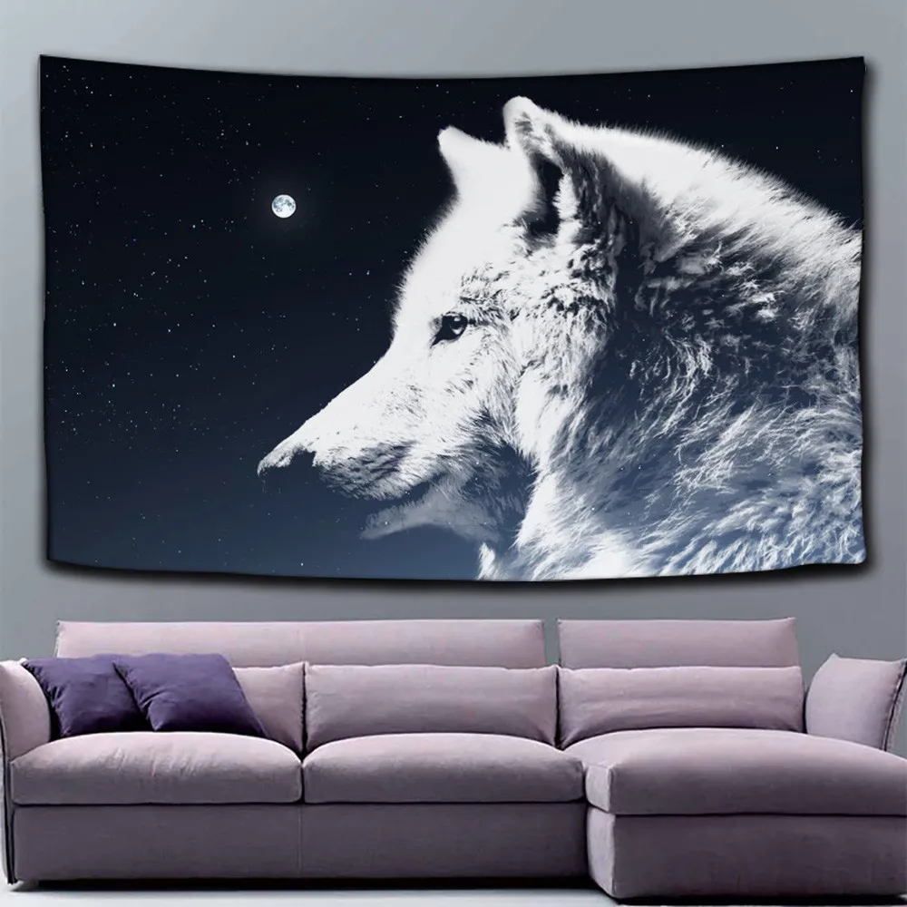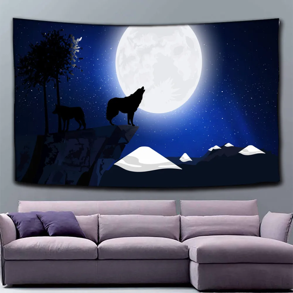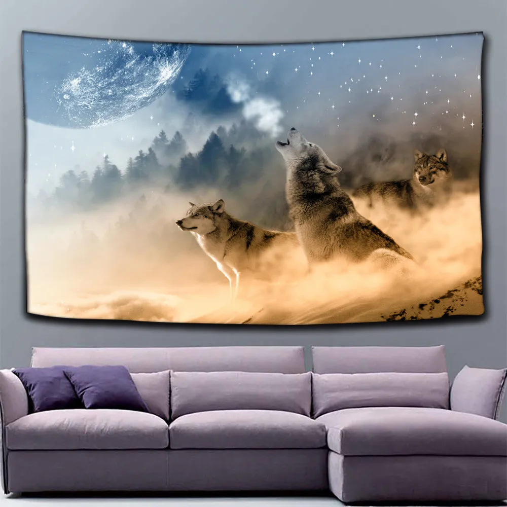 Животный Волк и гобелен с Луной, украшение на стену, висячий фон, психоделический настенный гобелен, гостиная, спальня, хиппи, мандала