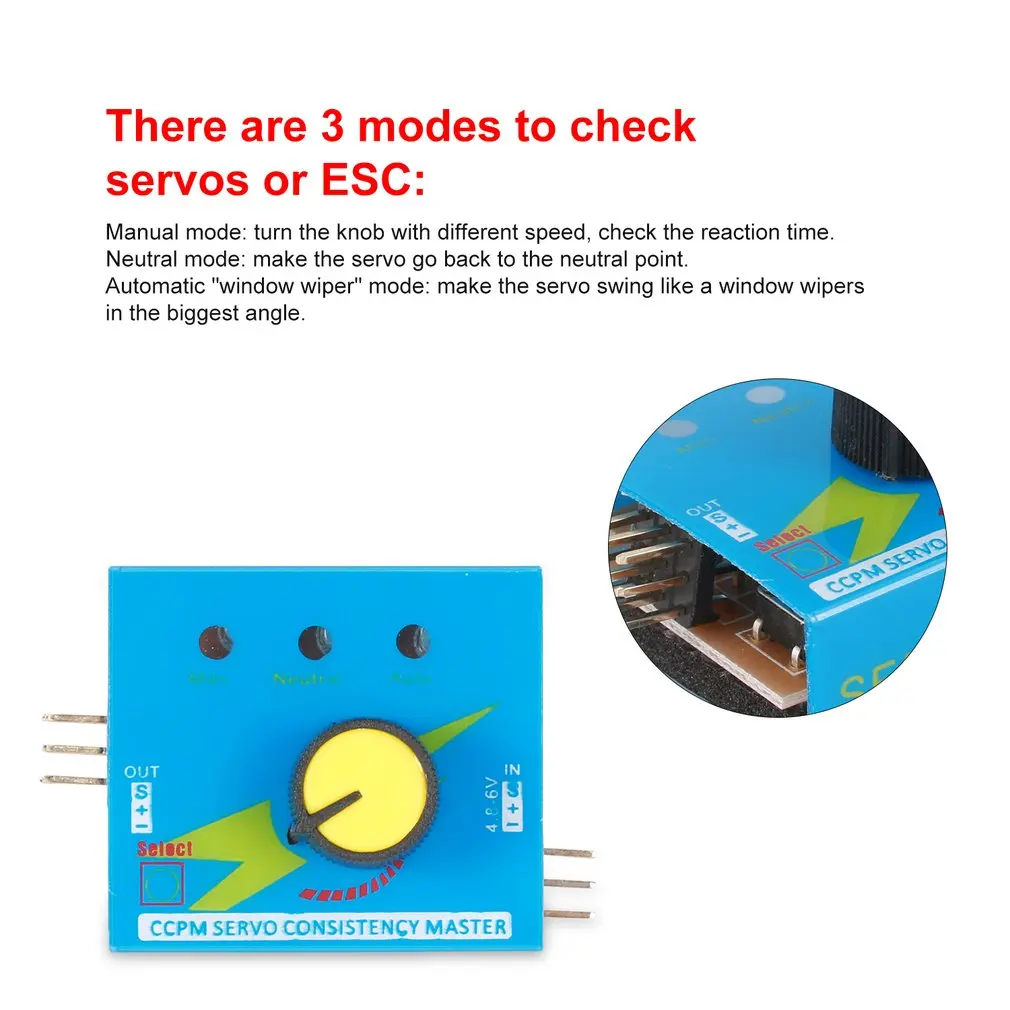 2. Может быть подключен к двум сервоприводам или ESC; Управление MCU, хорошая стабильность и высокая точность. Поверните ручку, можно обнаружить рулевое управление.