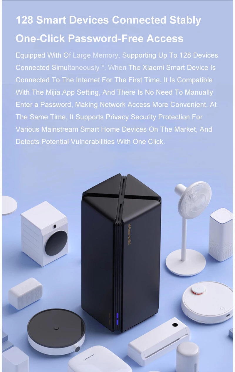 Оснащен большим объемом памяти 256 Мб, поддерживающим одновременное подключение до 128 устройств.(128 наборов интегрированного значения доступа 2,4G / 5G / LAN в лабораторных условиях, фактический опыт связан с возможностями терминала пользователя и реальной средой дома.) Поддержка обеспечения защиты конфиденциальности для различных основных устройств умного дома на рынке.