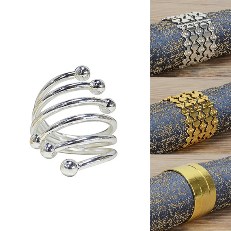 Золотые и серебряные кольца для салфеток, пряжки для свадебных мероприятий, украшение для стола, держатель для салфеток, вечерние принадлежности