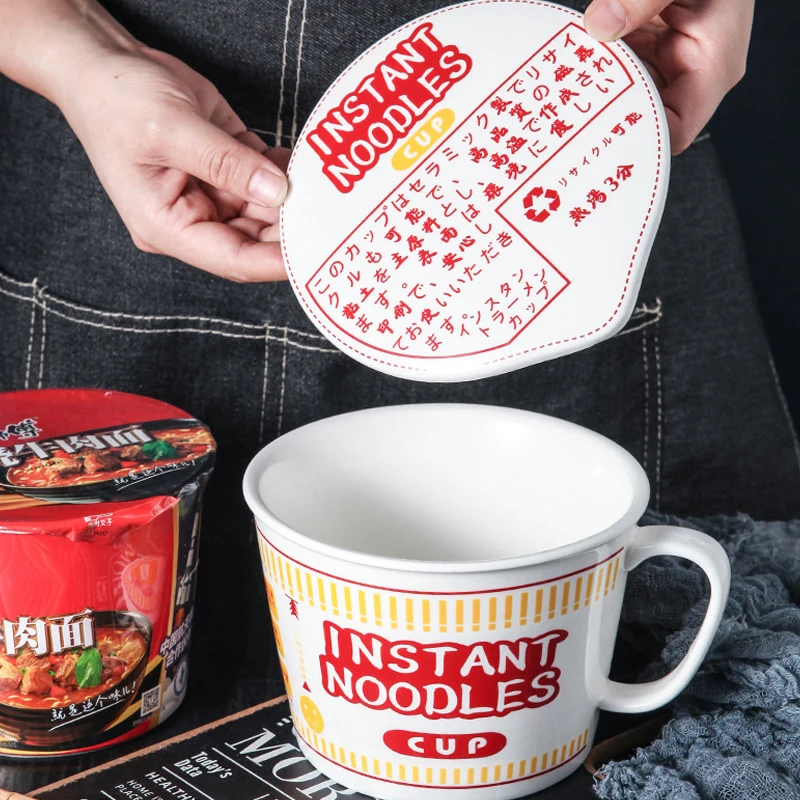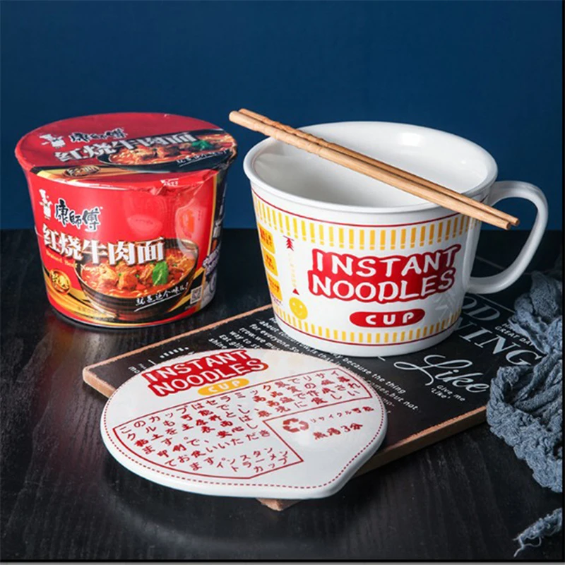 1000 мл керамическая миска для лапши с крышкой и ручкой InstanT