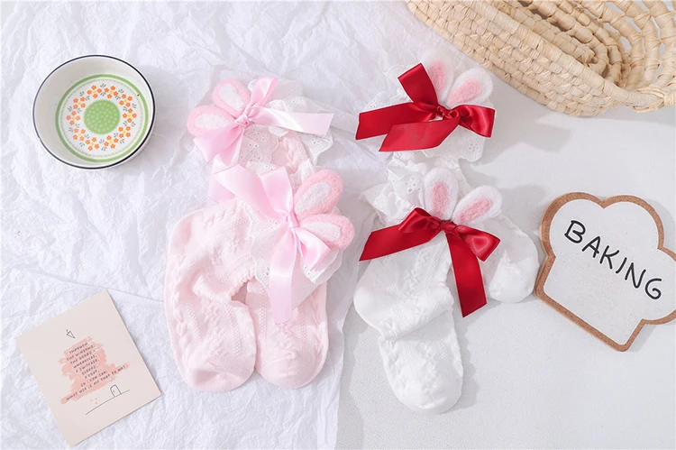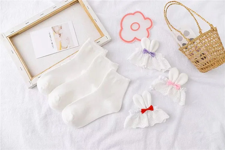 Японские Женские носки в стиле Лолиты, кружевные раздельные Короткие хлопковые носки с заячьими ушками, мягкие корейские носки для девочек