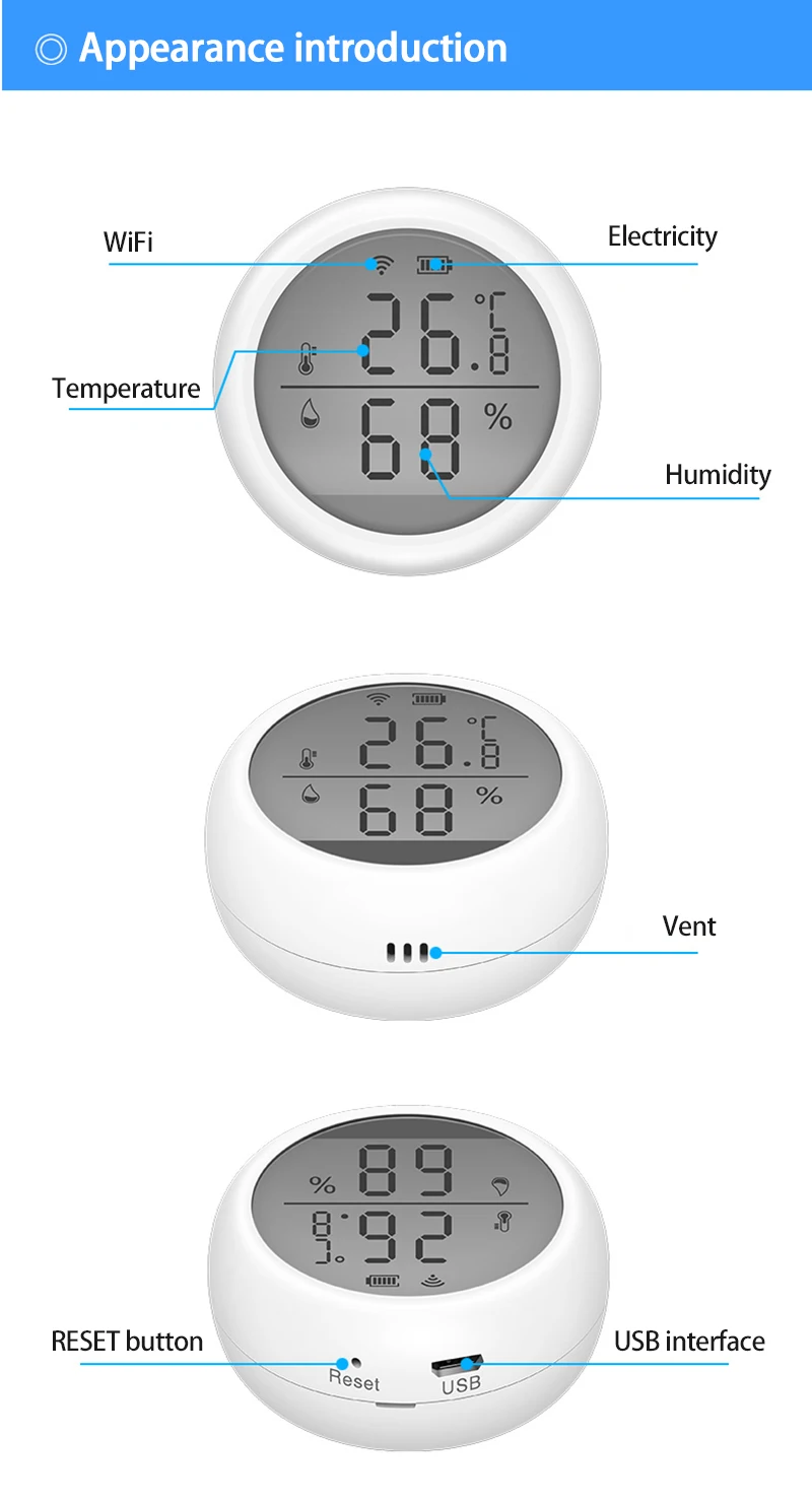ЖК-экран динамически отображает значения в реальном времени, передает комфортное состояние домашней среды, соединен с шлюзом и облачной платформой, и мобильное приложение может просматривать текущие и текущие температурные данные