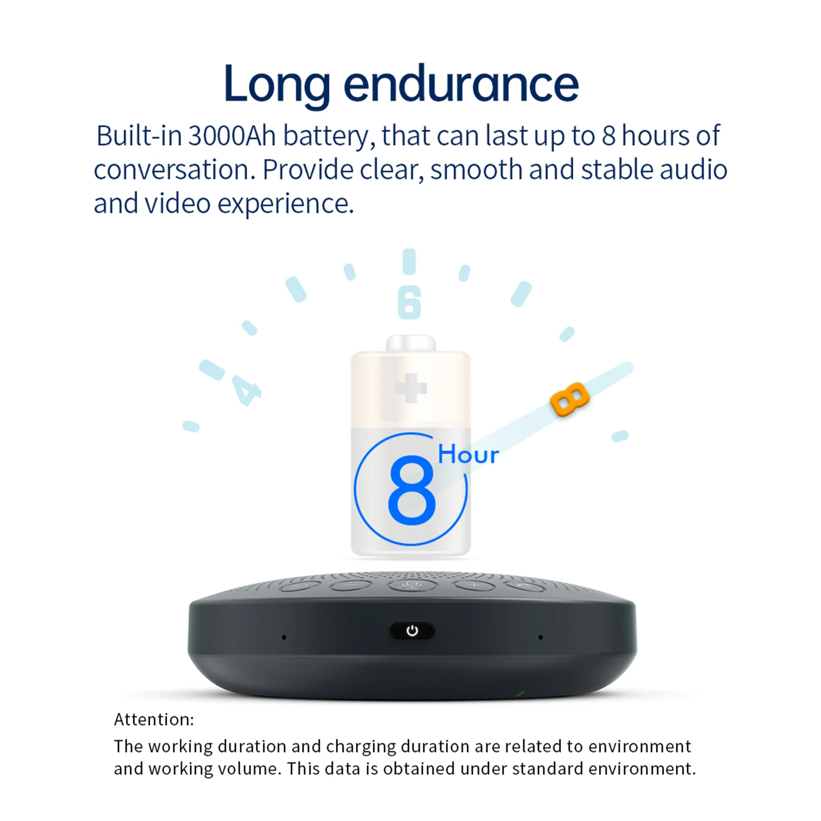 360 ° пикап:Оснащен 6 всенаправленными микрофонами, звуком 360 ° и чистым и естественным звуком, который может быть получен в диапазоне около 30 квадратных метров, с радиусом захвата 3 метра.
