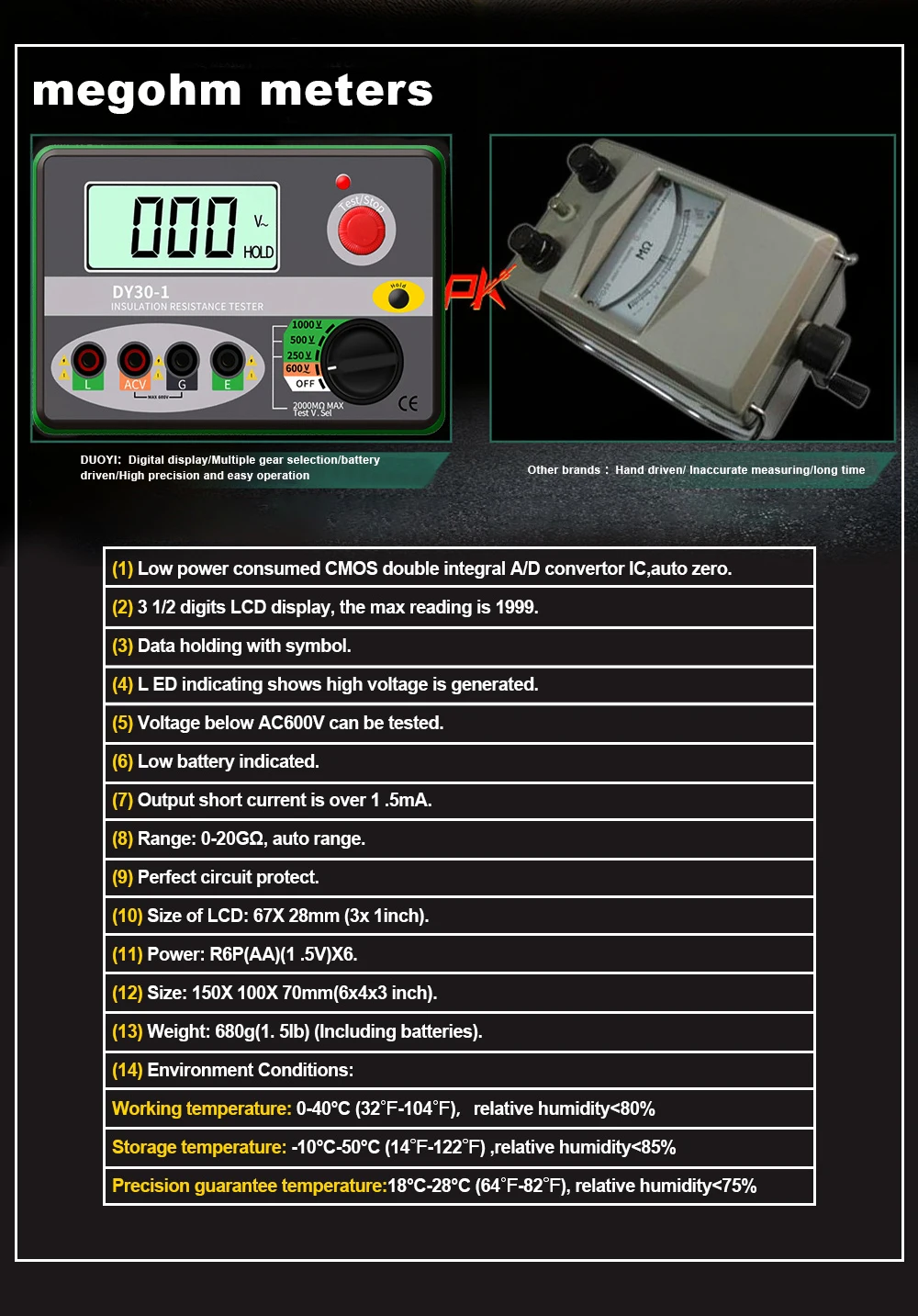 DY30-x серии применяются для всех видов электрического оборудования и изоляционных материалов, таких как трансформатор, электромотор, кабель, переключатель, прибор и т. д. это идеальный Электрический измерительный прибор.
