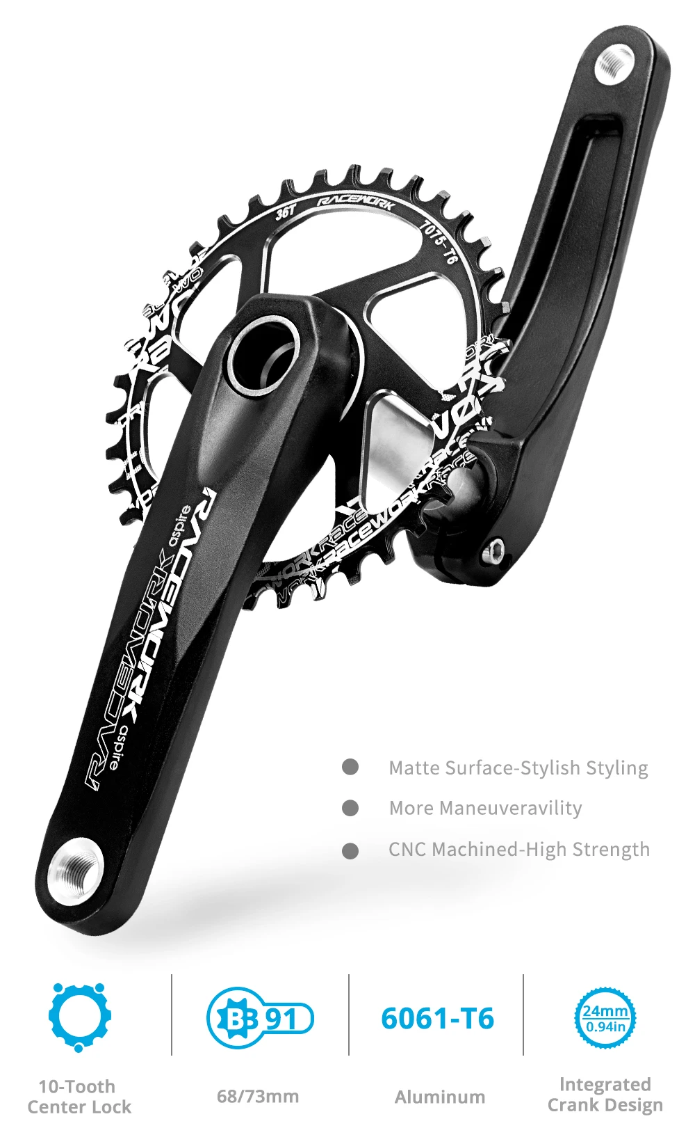 2. Цельная ковка из алюминиевого сплава. Технология 3D ковки делает Кривошип более трехмерным, линии кромки очевидны, превосходная матовая поверхность.