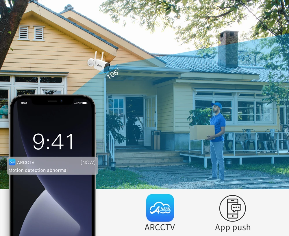 Support ios, Android,Windows PC. With the free app ARCCTV. you'll know that's happening even when you're not around, Receive notifications and view live or recorded footage right from your phone.