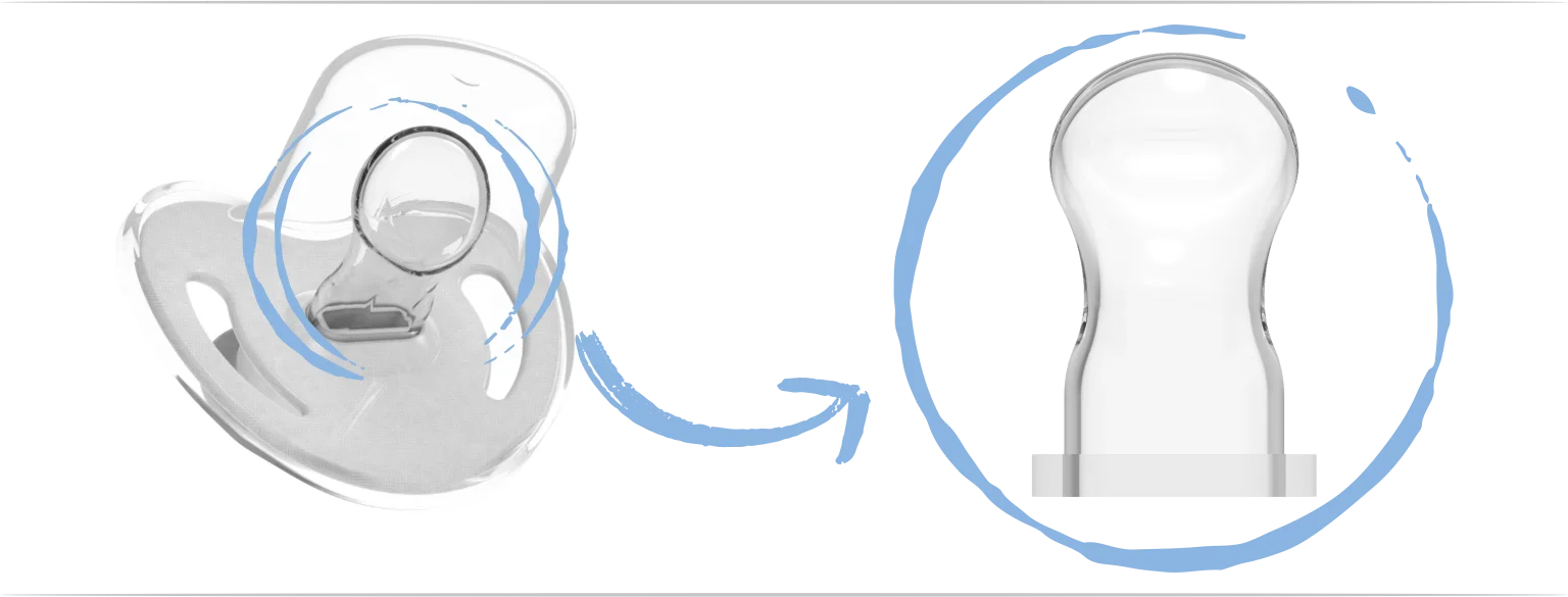 Полуэллиптическая форма ручки соски эстетична и легко захватывается.