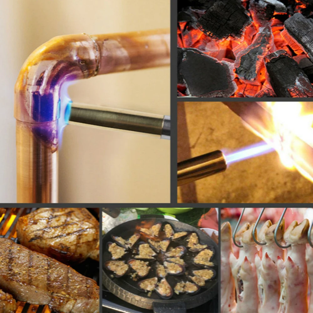 * 2. Длинная угловая насадка надежно удерживает вашу руку от пламени до 1300 градусов.