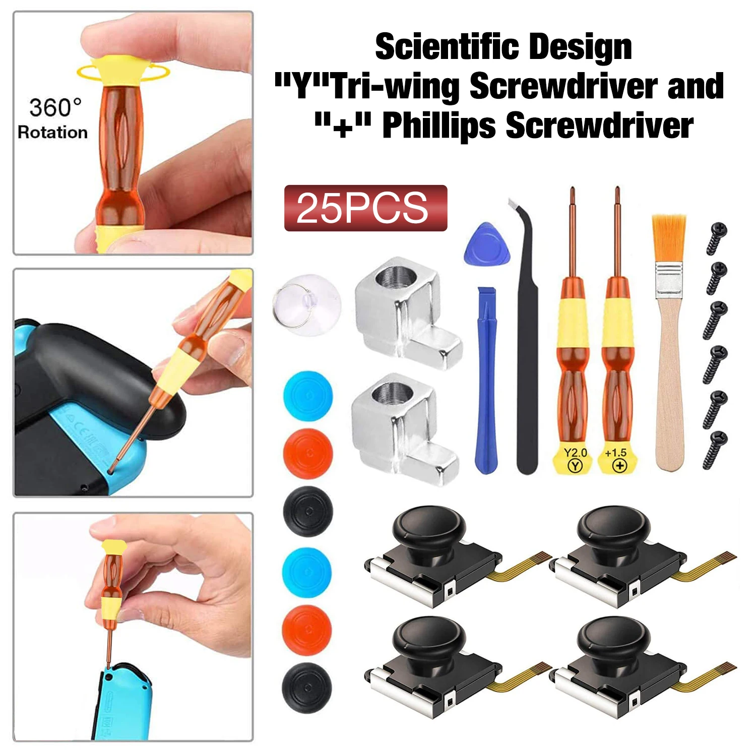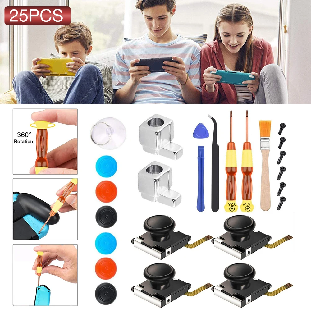 25 в 1 хит продаж, запчасти для ремонта, 3D аналоговый большой палец, палка для переключателя, NS Joy-Con, джойстик, колпачки, запасной контроллер, комплект