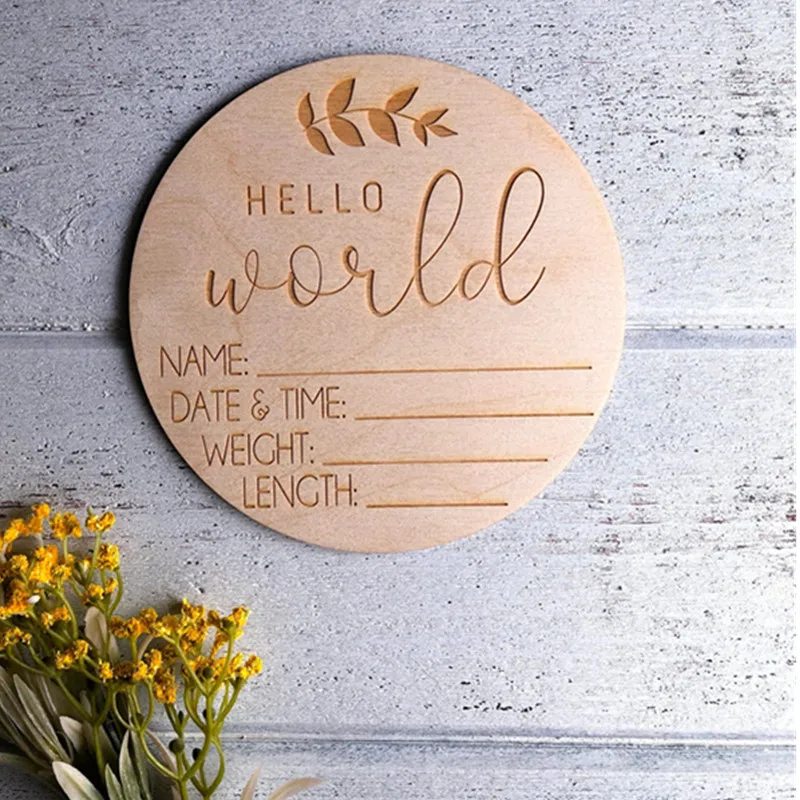 personalized laser engraved baby name sign, rustic nursery decor, wooden birth announcement sign, custom wood nursery name plaque, personalised baby boy girl bedroom decoration, wooden child name disc, newborn announcement sign, hospital welcome sign, baptism gift, customize baby shower gifts, photo prop, nursery wall art, newborn photoshoot, engraved circle baby name tag. baby photoshoot props, baby photoshoot accessories, newborn photo props. Hello My Name Is wood plaque.Hello world sign.