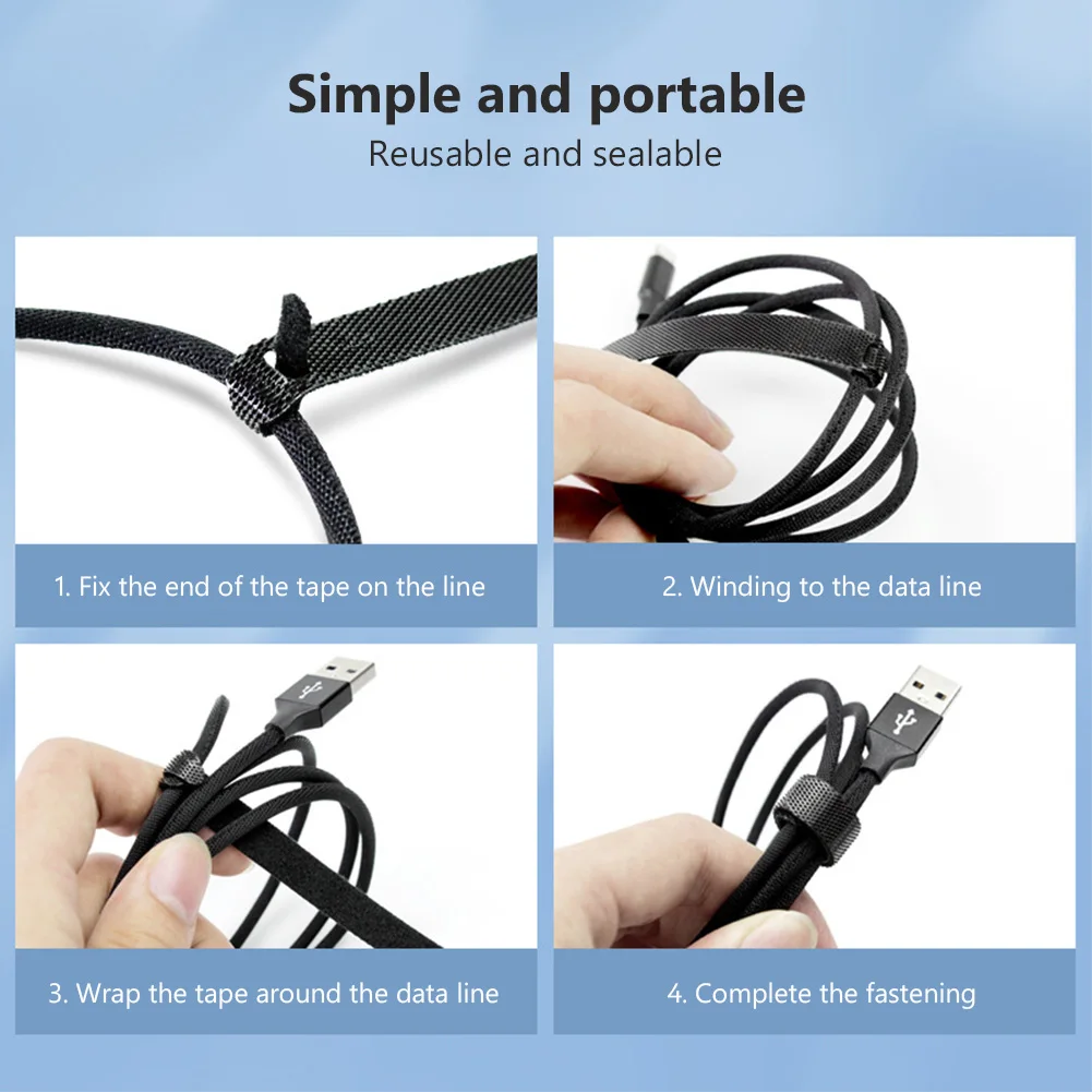 Кабельные стяжки многоразовые сделаны из нейлонового материала с крючком и петлей, они эластичные, съемный дизайн удобен в использовании.