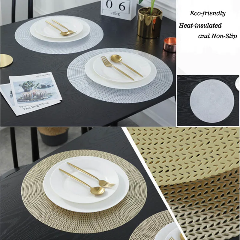 Характеристика:Простой и естественный, скандинавский минимализм.Абсолютно экологичный, теплоизолированный и нескользящий.Наслаждайтесь комфортным прикосновением хлопка, высоким качеством и элегантным вкусом жизни.Экологически чистый ПВХ материал, многоразовый, легко моется.Подходит для различных случаев, таких как кухня; Вечерние; Праздничные.Украшение стола, эффективно защищает рабочий стол.Название продукта: коврики для посудыМатериал: ПВХРазмер: 38 смЦвет: бронза/розовое золото/сереброFuction: используется для чайников, чаш, тарелок, чашек и т. д.Применение: кухня, гостинаяУпаковка:1 настольная подставка (другие аксессуары в комплект не входят)