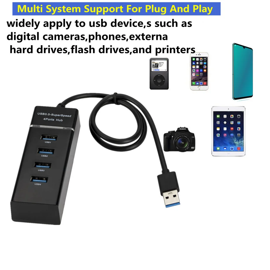 Посылка включает в себя: 1X 4 Порты и разъёмы USB 3,0 концентратор Описание: 1. 100% новый бренд и высокого качества синхронизация данных и Зарядка 4 Порты и разъёмы USB 3,0 концентратор (В основном функция передачи данных, при зарядке телефона скорость зарядки медленная, пожалуйста, обратите внимание на это) 2. Несколько интерфейсов USB3.0 поддерживают plug and play, просты в использовании и переноске 3. Поддержка защиты от перегрузки по току и мгновенного тока, защита подключенных устройств и себя 4. Светодиодный индикатор состояния питания 5. Поддержка USB3.0 Супер скорость передачи, вниз совместимый USB2.0/1,1 6. Ультратонкий дизайн 7. Диск бесплатно, Поддержка windows xp/vista/7/8/10 и Mac OS,linux Спецификация: Наименование товара: usb-хаб 3,0 Порты USB: 4 Кабель: около 25-35 см Размер: 104*37*24 мм Цвет: черный Совместимость: Windows 2k/XP/Vista/Win 7/Linux/MAC OS 9,1 или выше