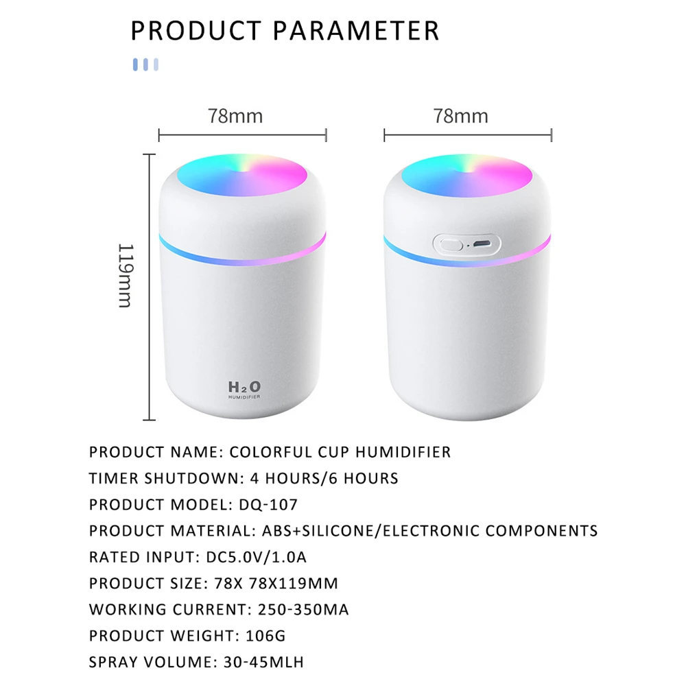 ● Романтический Ночной светильник: Нажмите кнопку, чтобы изменить цвет, удерживайте кнопку, чтобы выключить светильник, не влияя на туман