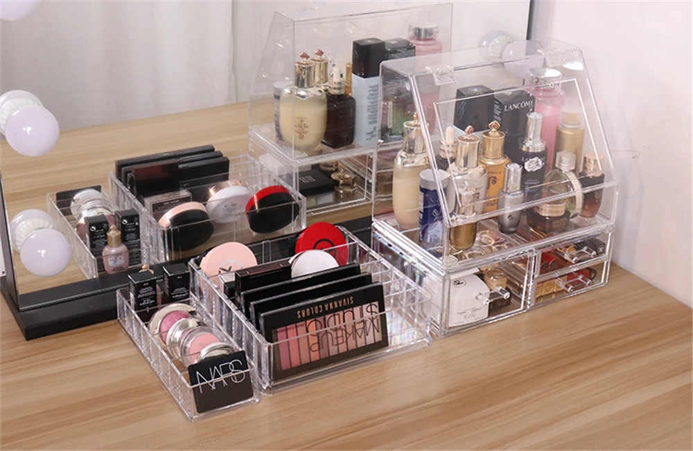 Характеристики продукта: прозрачный акриловый материал, регулируемая ширина отсеков, отлично подходит для рабочего стола и рисования, подходит для различных теней для век, румян для щек, прессованной пудры и т. д.