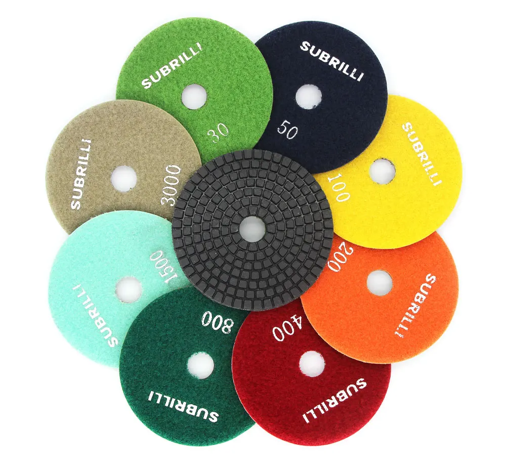 SUBRILLI 4 дюймовые полировальные диски для бетона, камня, абразивного алмазного шлифовального круга, 8 шт., шлифовальный диск из мрамора и гранита