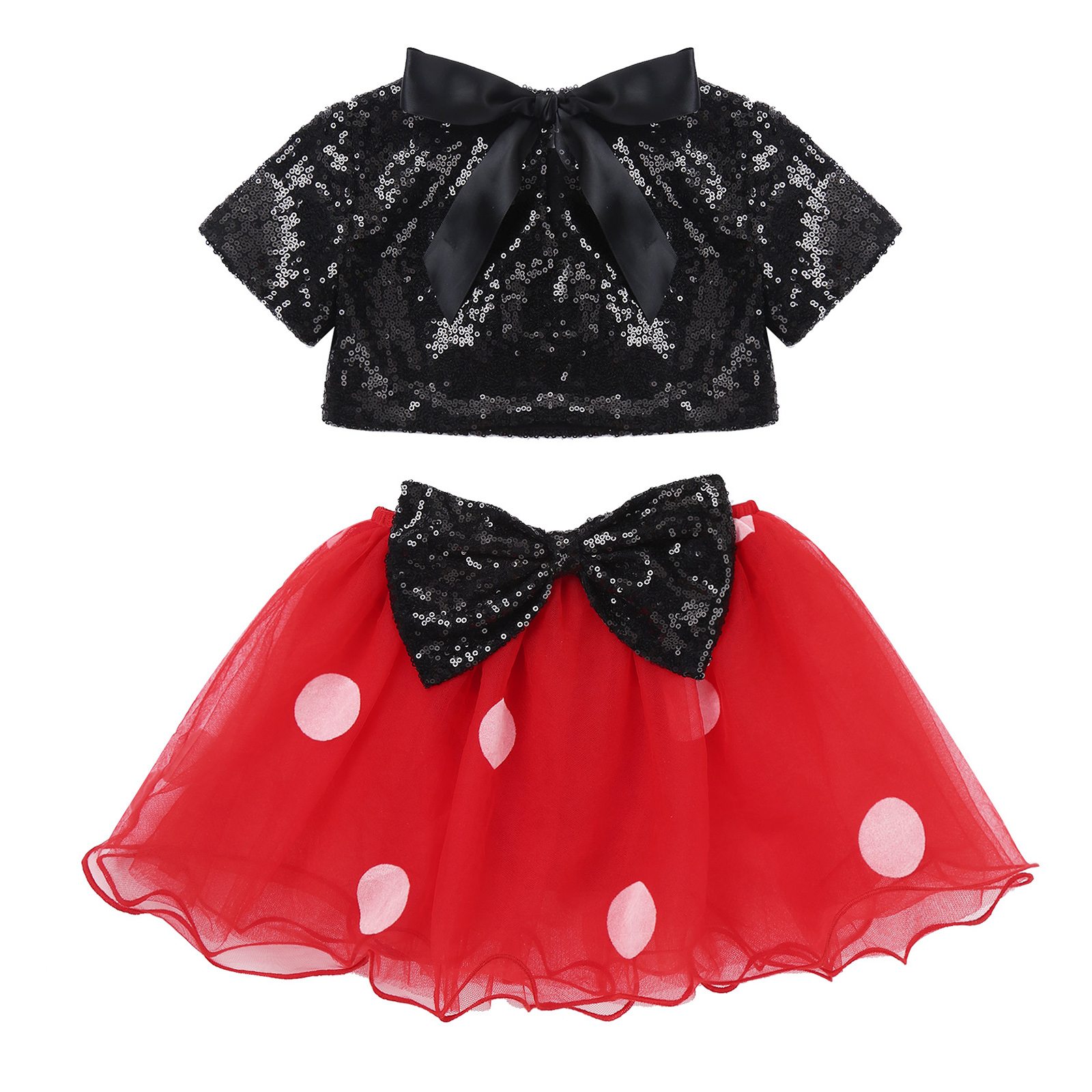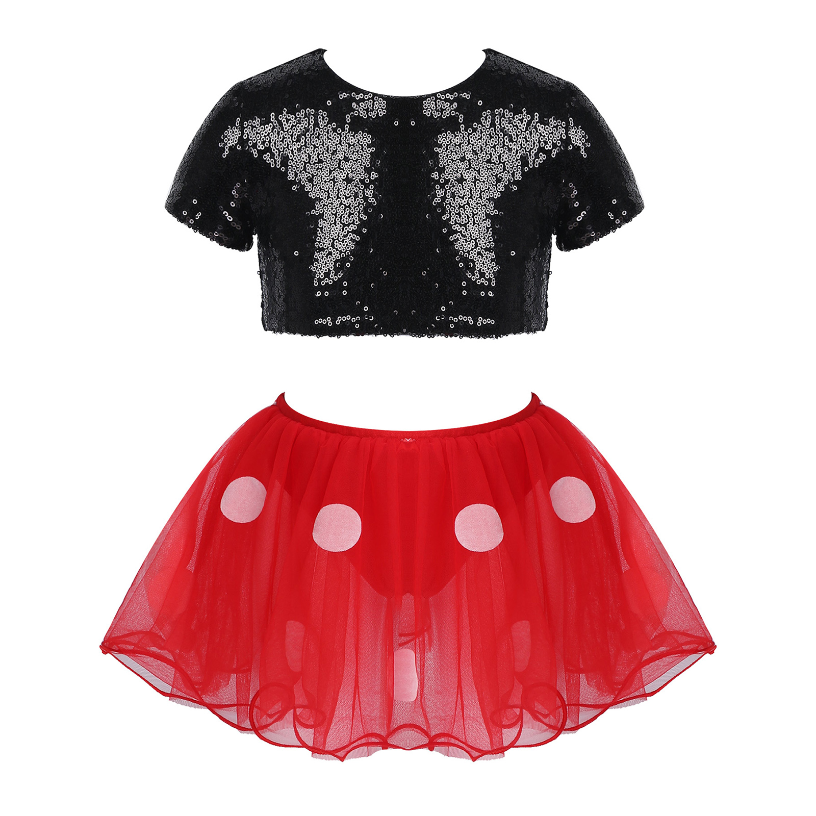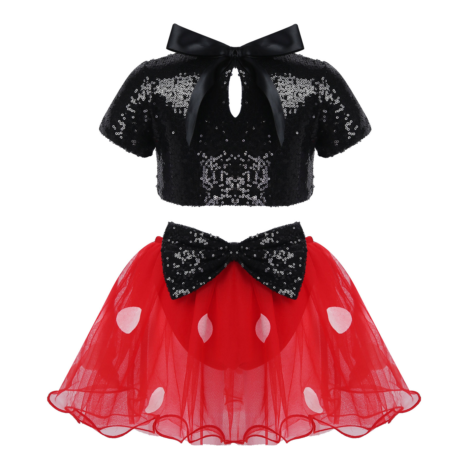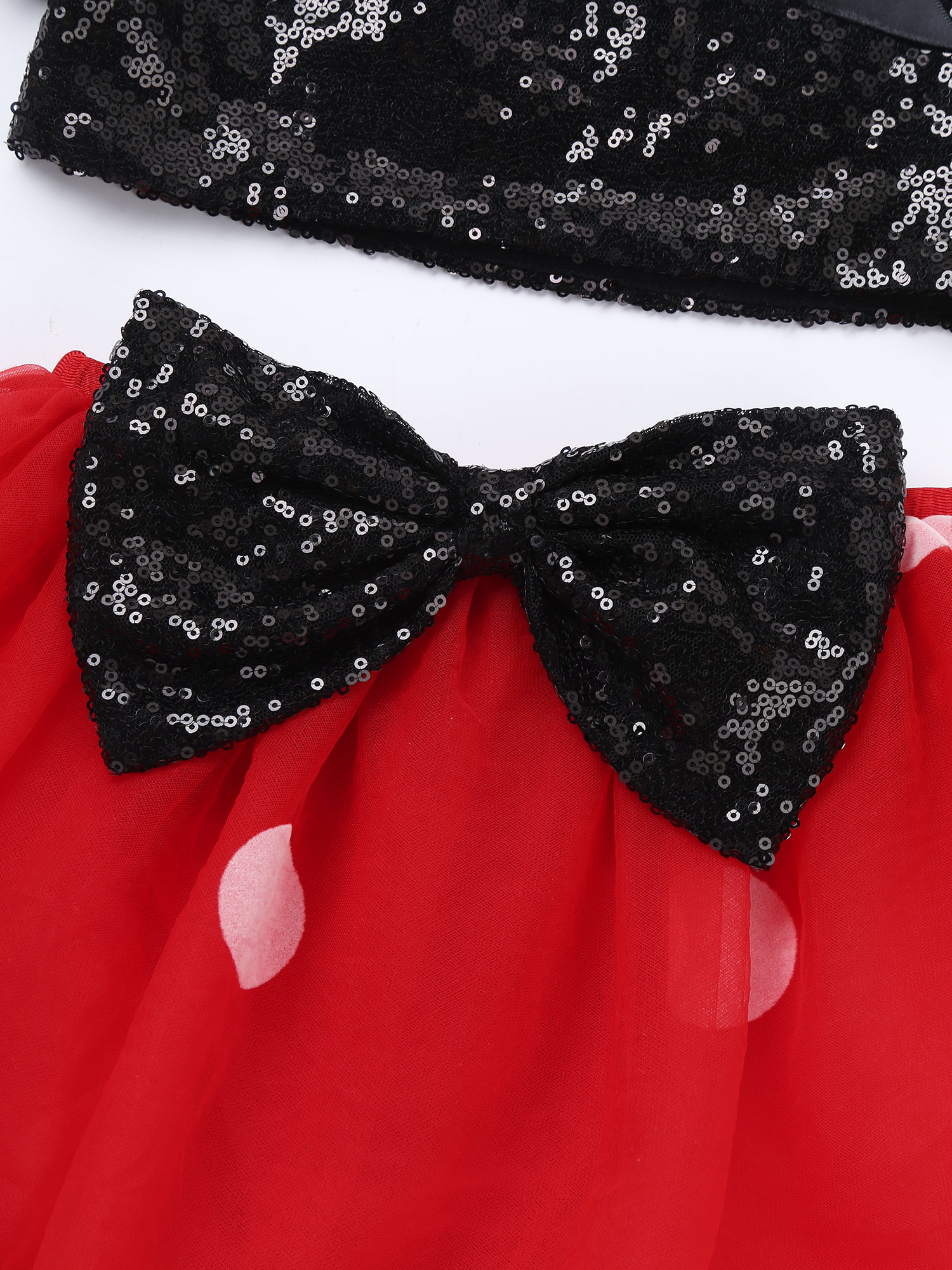 Комплект из 2 предметов для девочек: укороченный топ с круглым вырезом и короткими рукавами с блестками и сетчатая юбка в горошек.